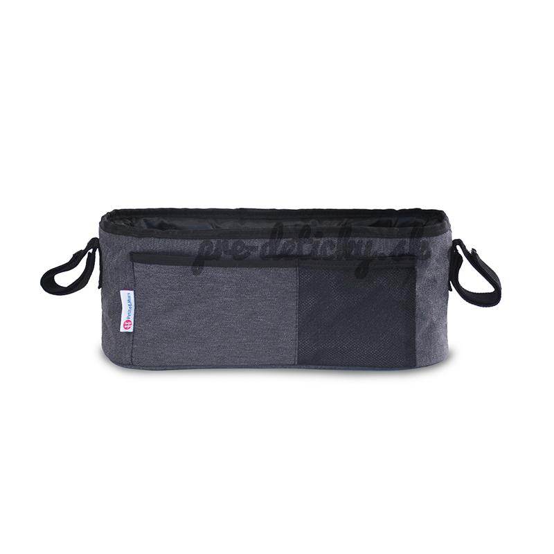 Praktický organizér s nastaviteľnými popruhmi na prichytenie k rukoväti kočíka. Je vhodný pre väčšinu kočíkov. Pri prechádzke budete mať všetky dôležité predmety po ruke.