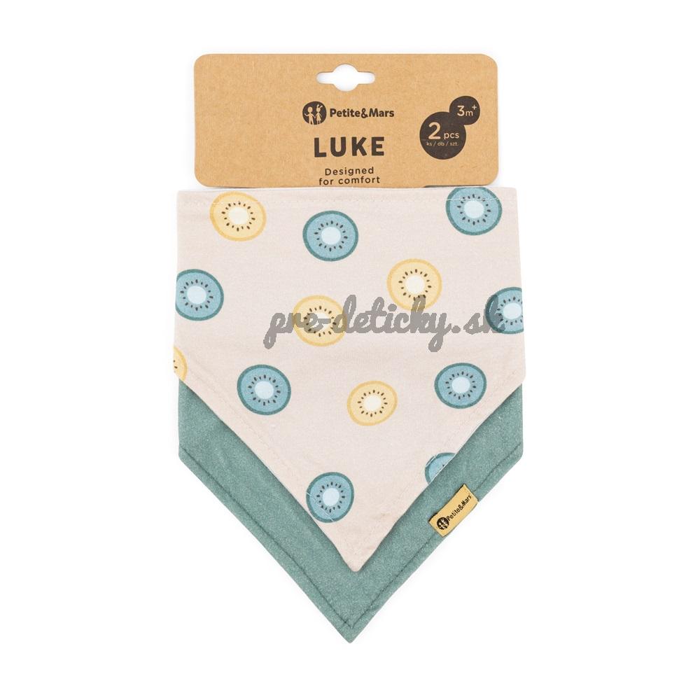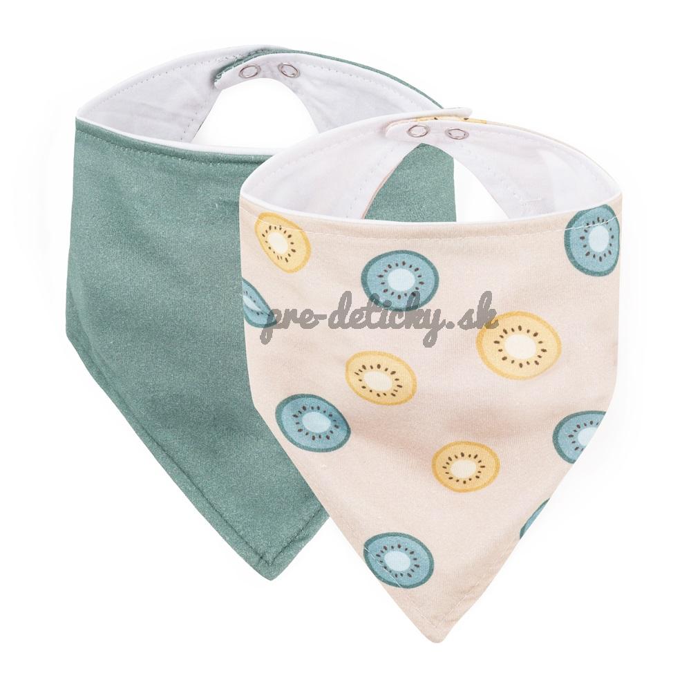 PETITE&MARS Podbradník bandana Luke 2 ks Beige Kiwis&Misty Green 3m+