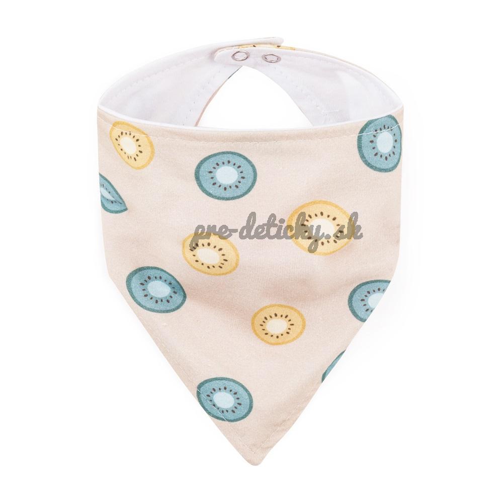 Súprava obsahuje dva podbradníky – jeden v jednofarebnom prevedení a druhý so štýlovým vzorom, čo umožňuje ľahké zladenie s akýmkoľvek outfitom. Praktické zapínanie na cvoček s nastaviteľnou veľkosťou zabezpečuje dokonalé prispôsobenie okolo krku dieťatka.