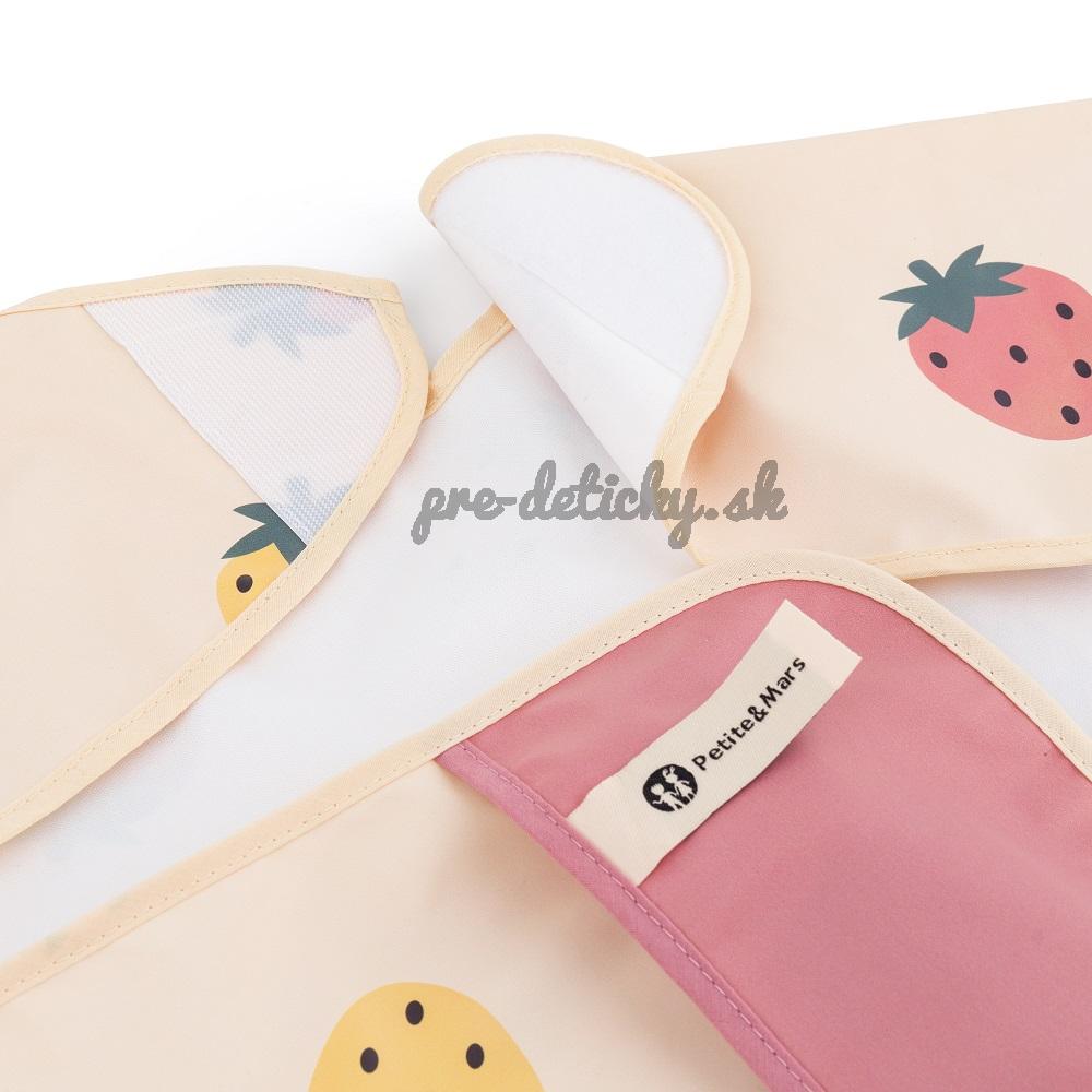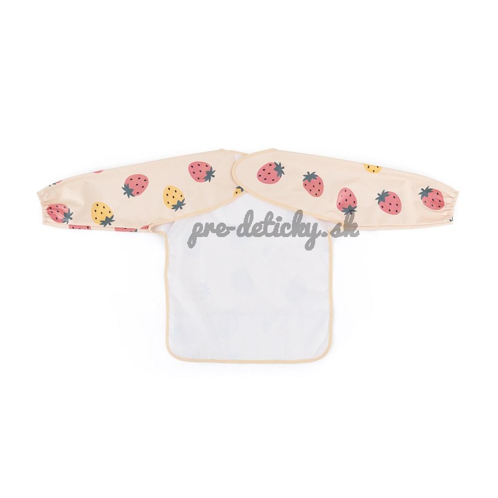 Pohodlný, nepremokavý podbradník s dlhým rukávom je vyrobený z rýchloschnúceho, bezpečného PU materiálu, úplne bez PVC a ftalátov. Predné vrecko na omrvinky zabezpečí poriadok a pohodlie pri kŕmení a dlhé rukávy s gumičkou chránia oblečenie pred zašpinením a namočením. Podbradník je veľmi jemný na dotyk a zapína sa na mäkký suchý zips. Možno ho používať nielen pri jedle, ale aj pri výtvarných prácach. Ak ho chcete udržať v čistote, po použití ho jednoducho utrite vlhkou handričkou.
