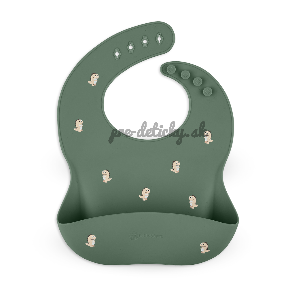 PETITE&MARS Podbradník silikónový Take&Match Green Dinos 6m+