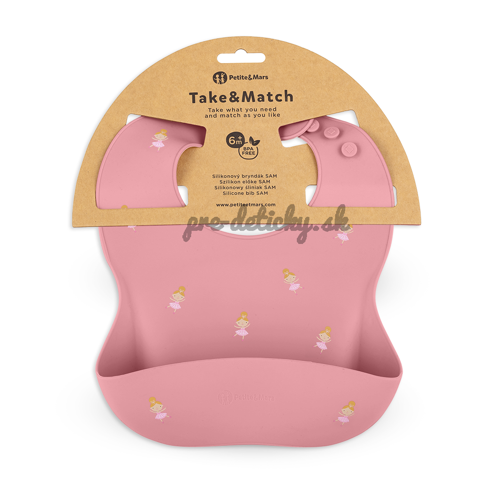 PETITE&MARS Podbradník silikónový Take&Match Rose Princesses 6m+