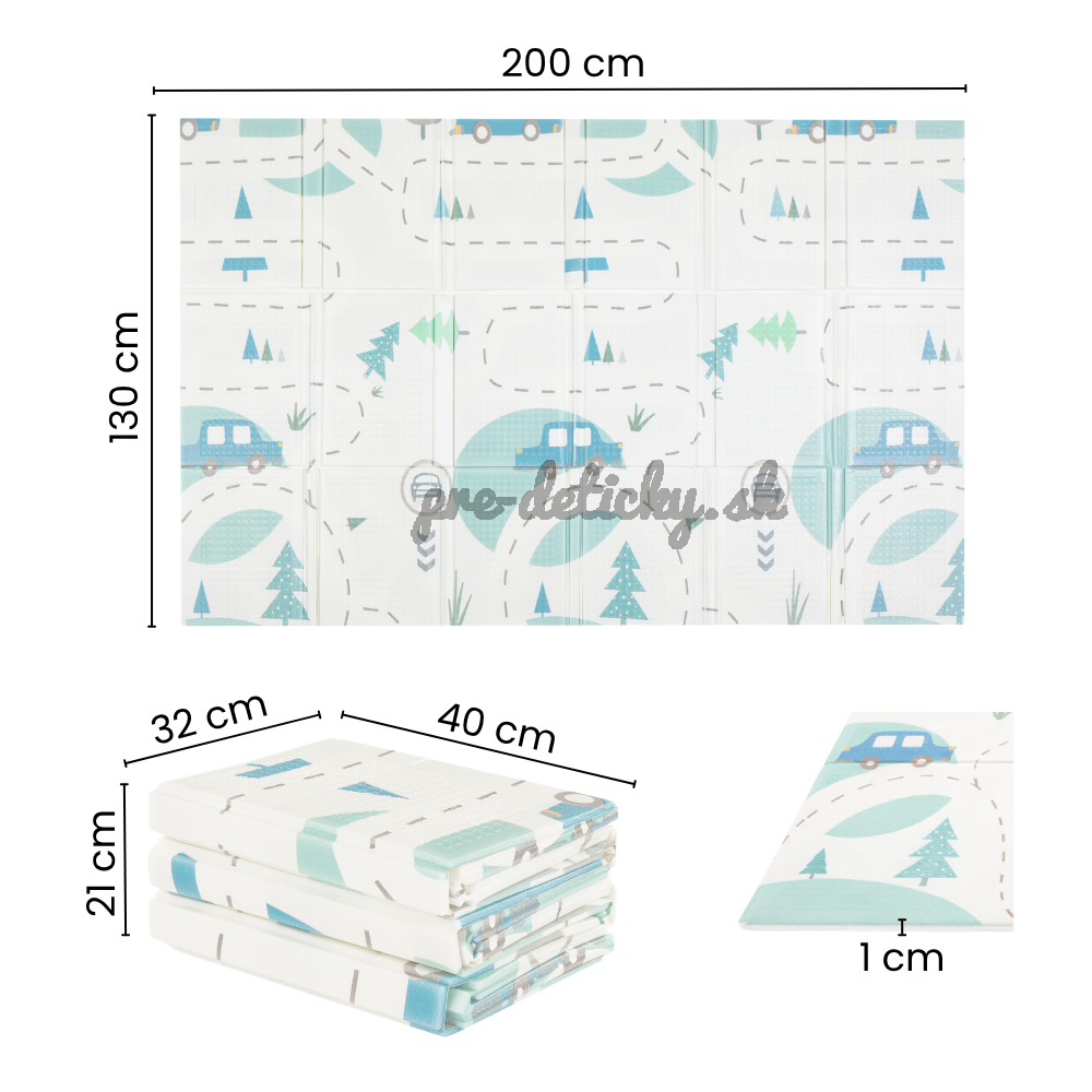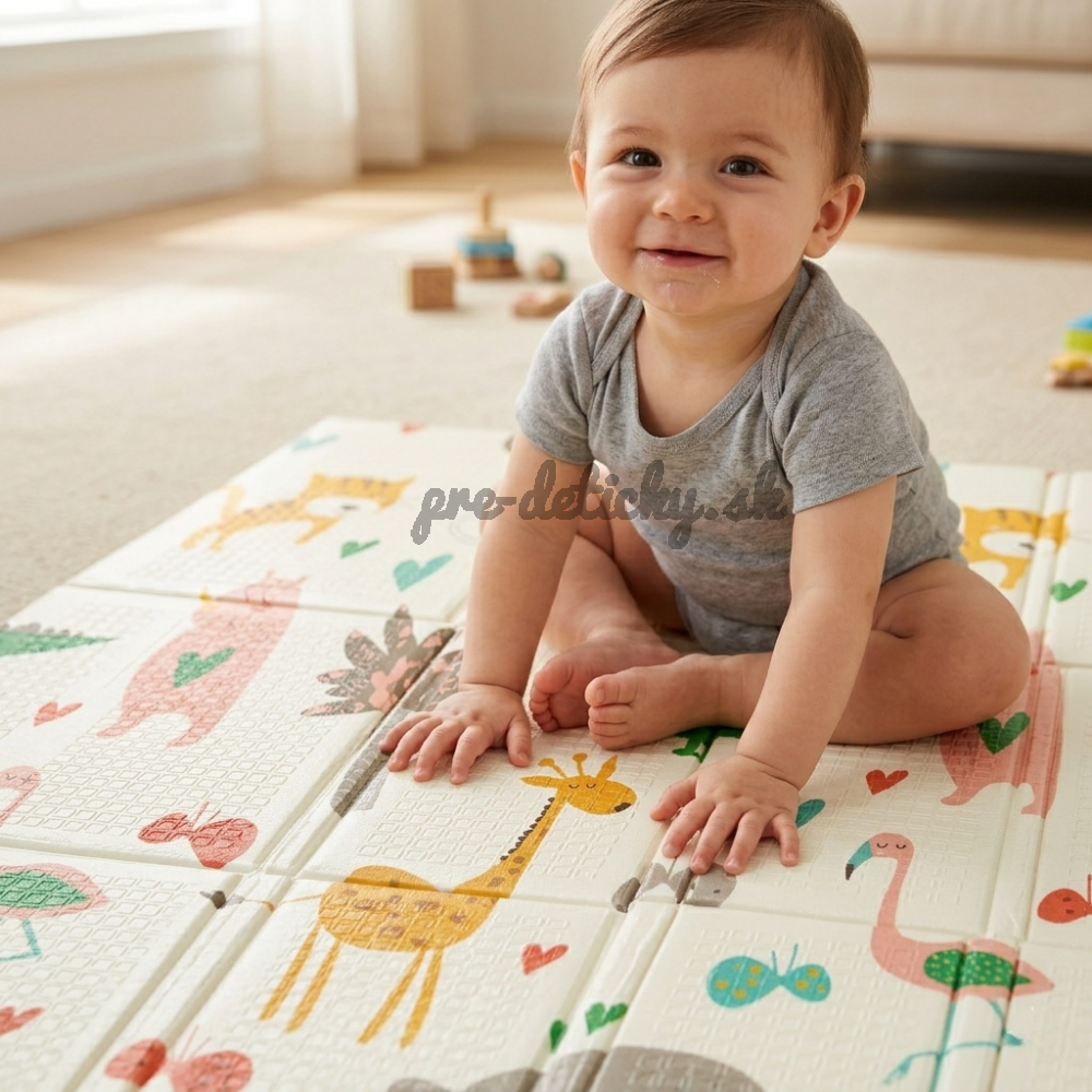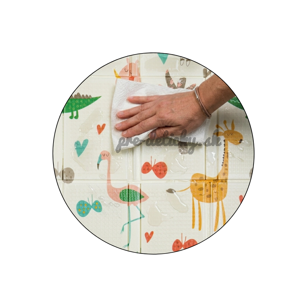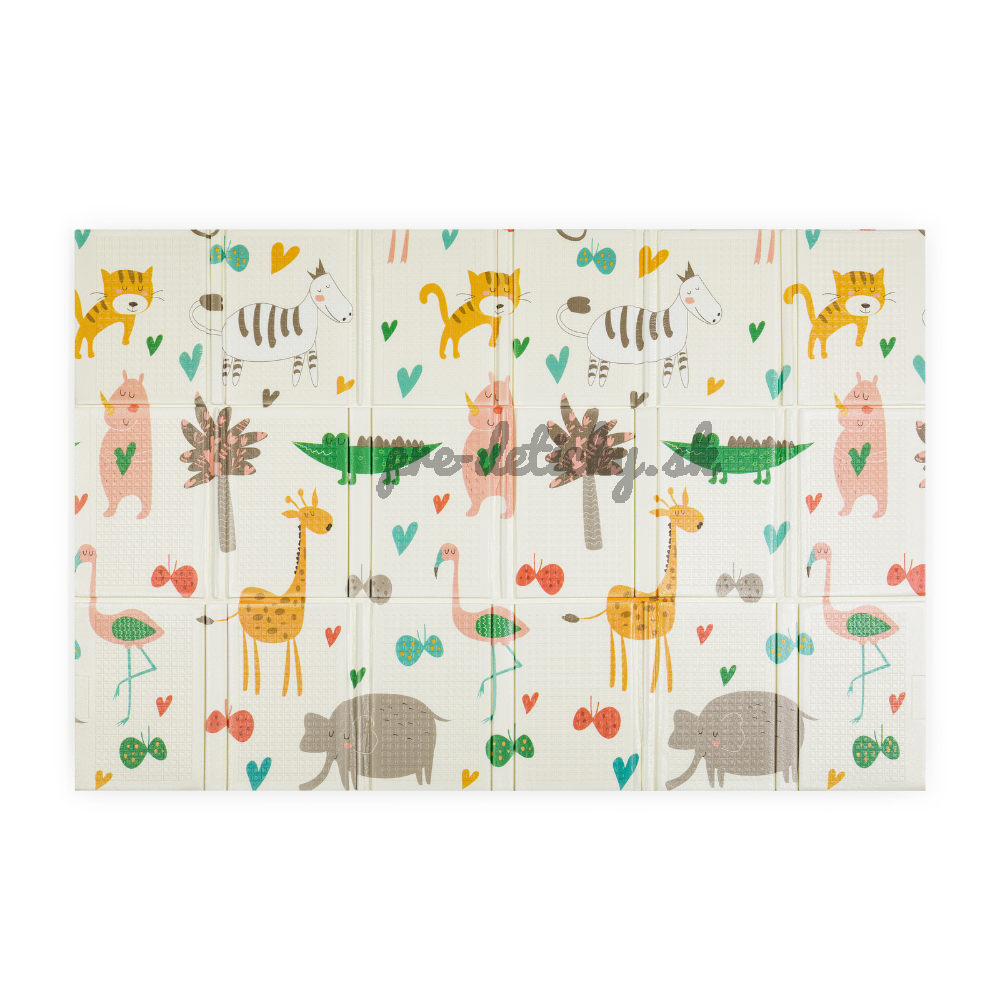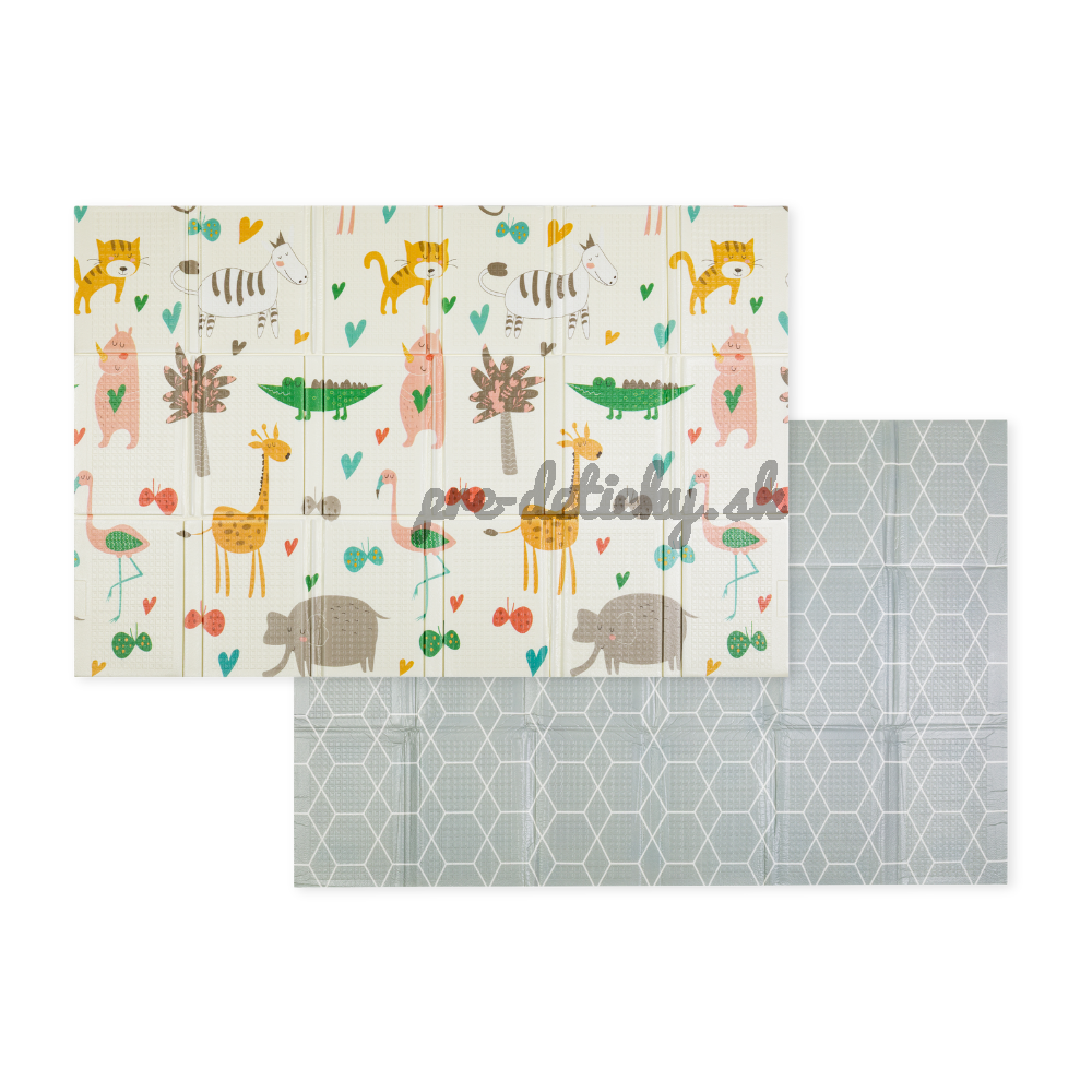 Mäkká skladacia podložka pre bezpečnú hru vášho dieťatka. Vhodná od narodenia. Podložka má obojstrannú potlač s veselými motívmi, protišmykovú úpravu na povrchu, skvele izoluje a odhlučňuje, je vodeodolná, jemná na povrchu, elastická, avšak tvarovo stabilná, skladná a predovšetkým poskytuje deťom bezpečie pri hre.