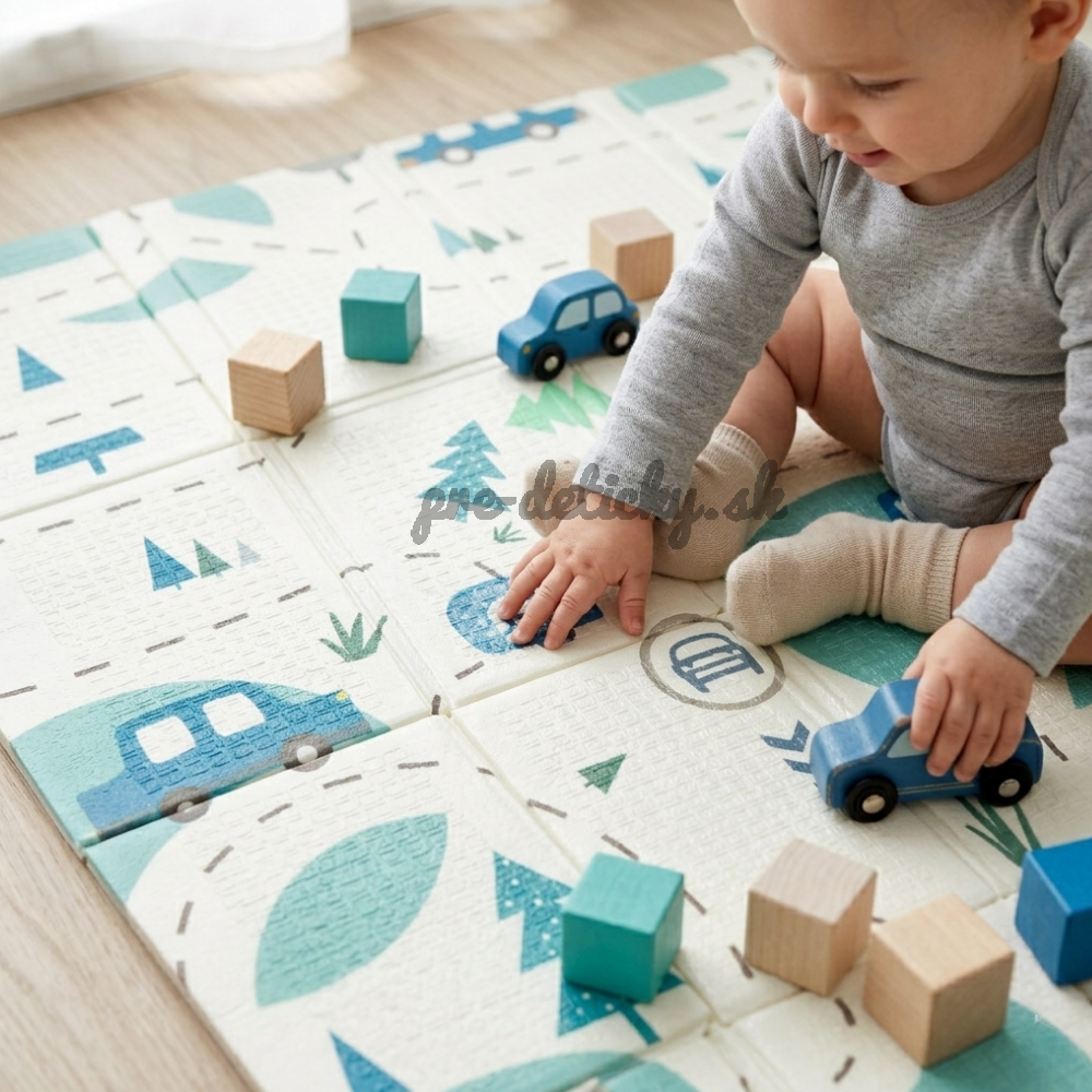 Mäkká skladacia podložka pre bezpečnú hru vášho dieťatka. Vhodná od narodenia. Podložka má obojstrannú potlač s veselými motívmi, protišmykovú úpravu na povrchu, skvele izoluje a odhlučňuje, je vodeodolná, jemná na povrchu, elastická, avšak tvarovo stabilná, skladná a predovšetkým poskytuje deťom bezpečie pri hre.