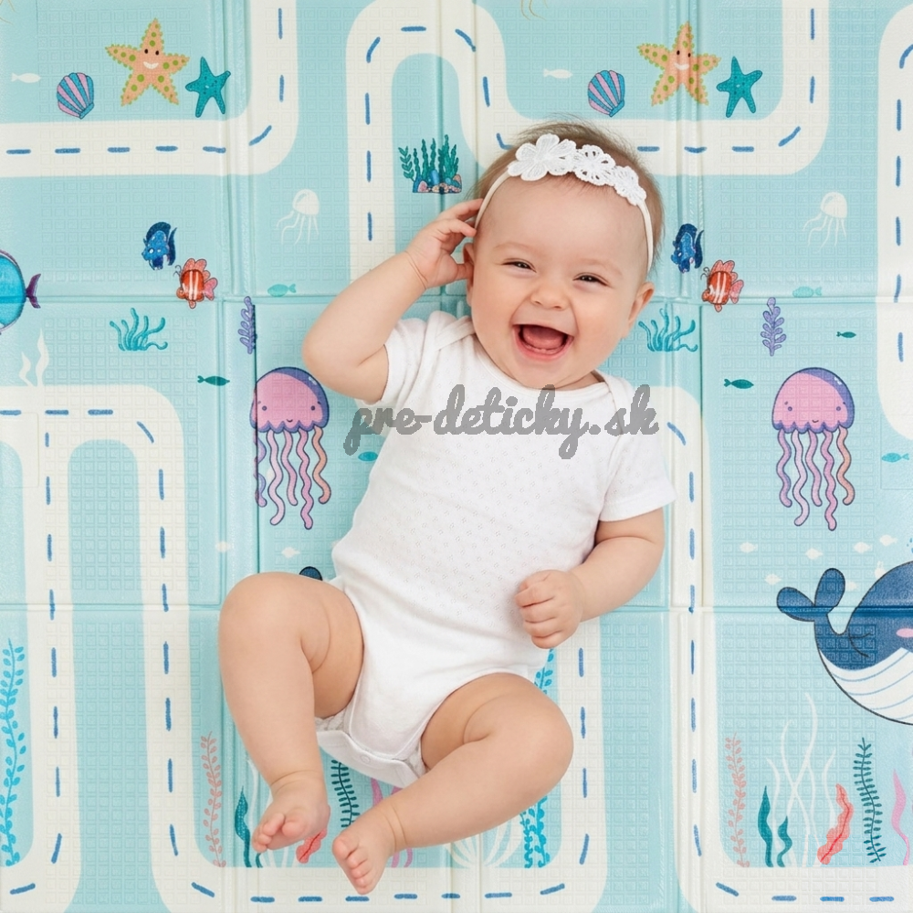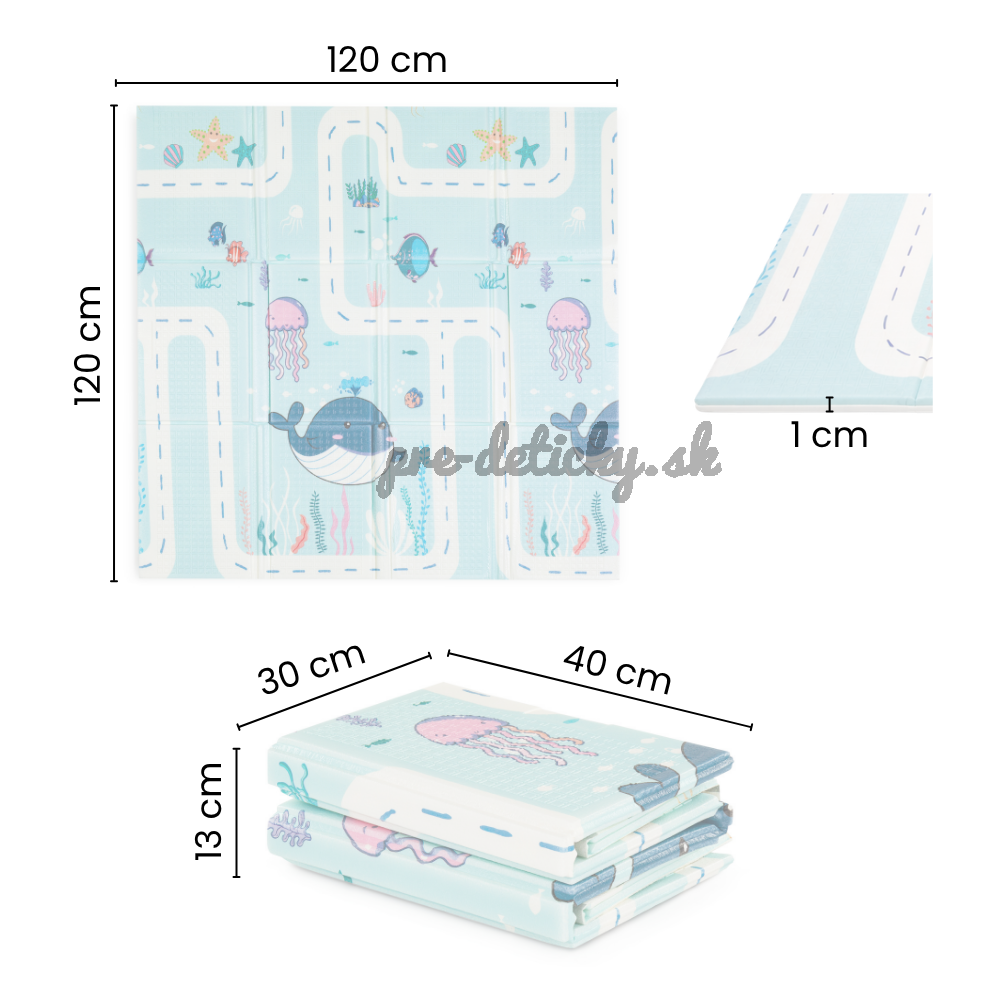 Mäkká skladacia podložka pre bezpečnú hru vášho dieťatka. Vhodná od narodenia. Podložka má obojstrannú potlač s veselými motívmi, protišmykovú úpravu na povrchu, skvele izoluje a odhlučňuje, je vodeodolná, jemná na povrchu, elastická, avšak tvarovo stabilná, skladná a predovšetkým poskytuje deťom bezpečie pri hre.