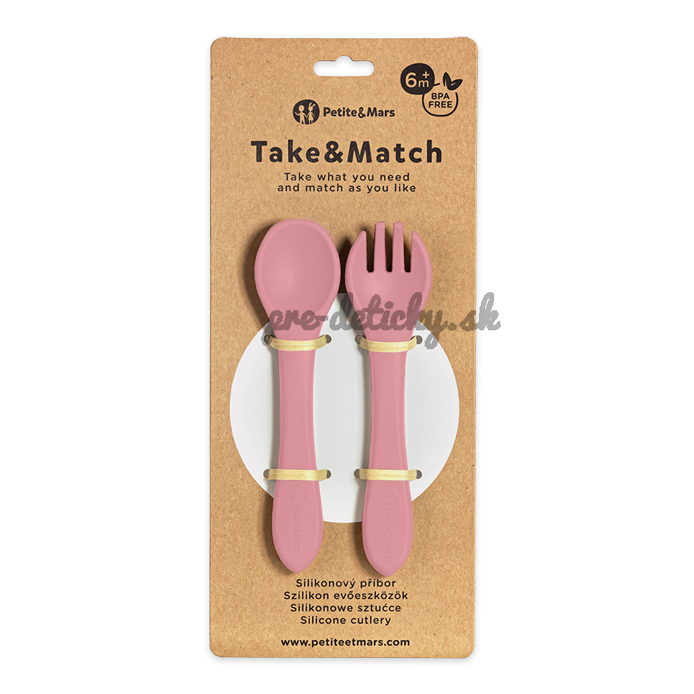 PETITE&MARS Príbor silikónový TAKE&MATCH Dusty Rose 6m+