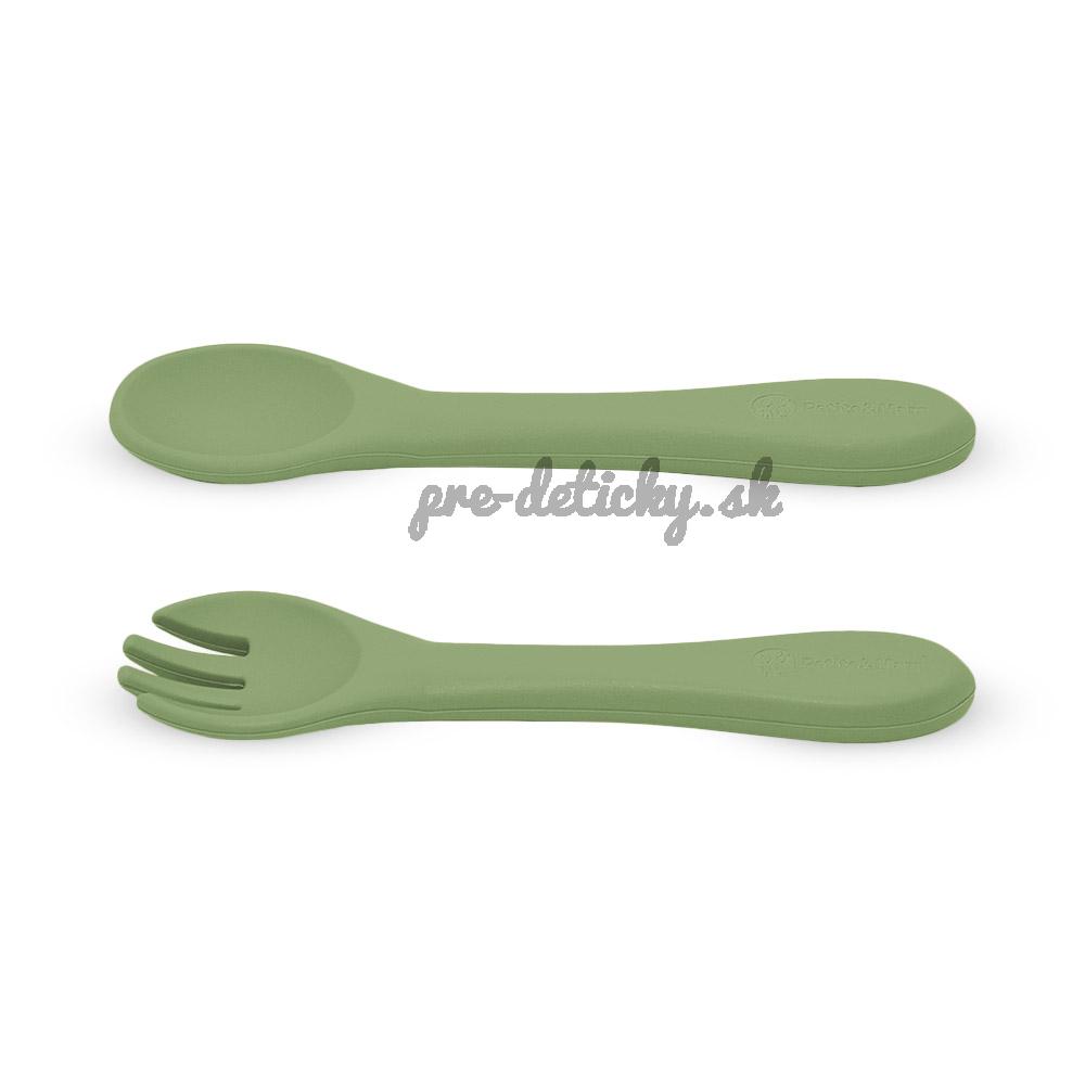 Súprava pozostávajúca z vidličky a lyžičky je celá vyrobená z potravinárskeho silikónu bez obsahu BPA. Vďaka tomu môže vaše dieťa jesť príborom teplé aj studené jedlá. Vďaka pružnému silikónu je príbor ideálny pre citlivé ďasná malého dieťaťa. Príbor je vhodný pre deti od 6 mesiacov, ktoré sa zoznamujú s pestrou stravou, a pre tie, ktoré sa už úspešne učia jesť samy. Zaoblené tvary a malé rozmery uľahčujú dieťatku ich uchopenie a tým aj papanie.