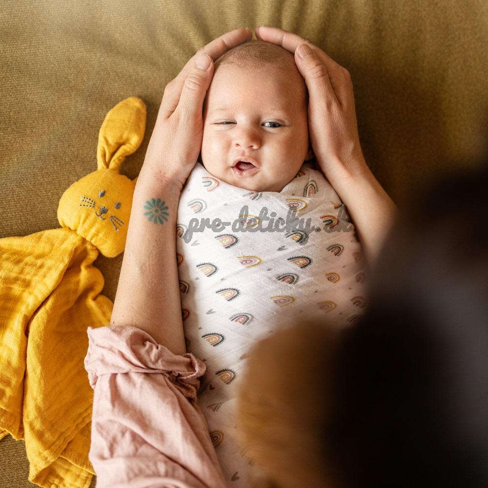 Okrem zavinovačiek Misty zahŕňa rada bambusových mušelínov aj bambusové plienky Moussy a roztomilého zajačika do postieľky Huga.