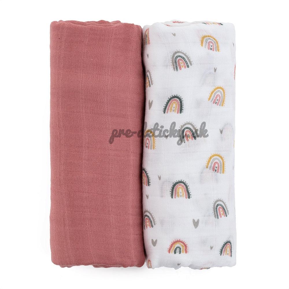 PETITE&MARS Prikrývka bambusová mušelínová 2ks Misty Rose Rainbow 2v1, 120 x 120 cm
