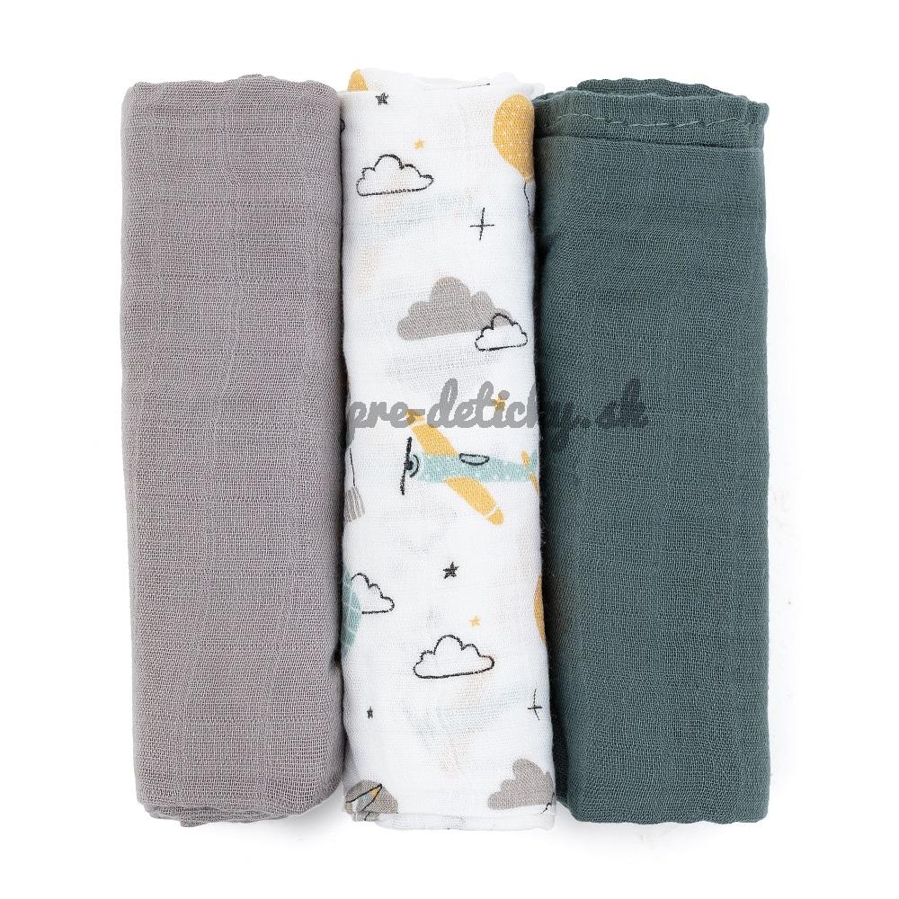PETITE&MARS Sada plienok bambusová mušelínová 3ks Moussy Grey Planes, 68 x 68 cm