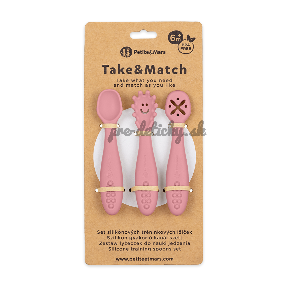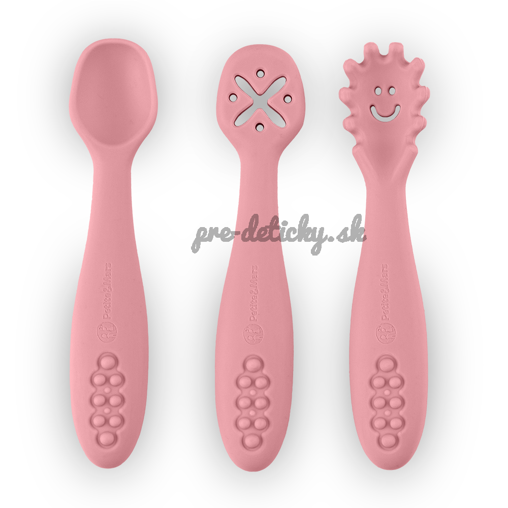 PETITE&MARS Set 3 ks silikónových tréningových lyžičiek Take&Match Dusty Rose 6m+
