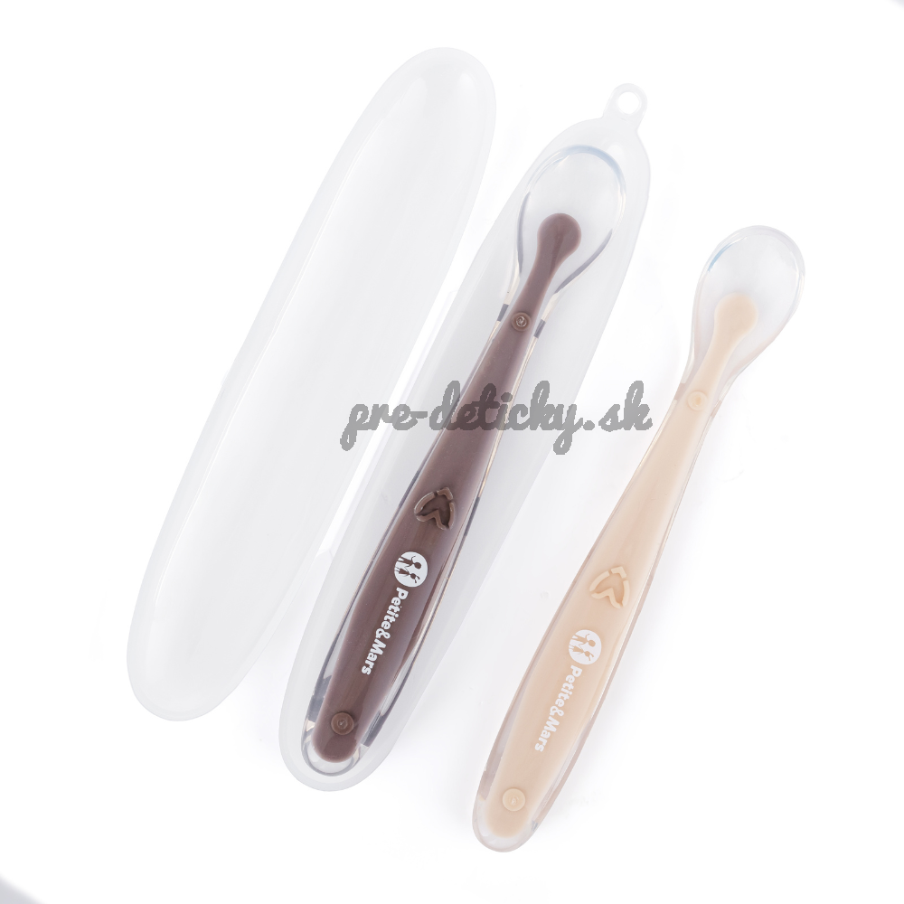 PETITE&MARS Silikónové lyžičky s puzdrom, sada 2 ks, Take&Match Sand - Cocoa 6m+