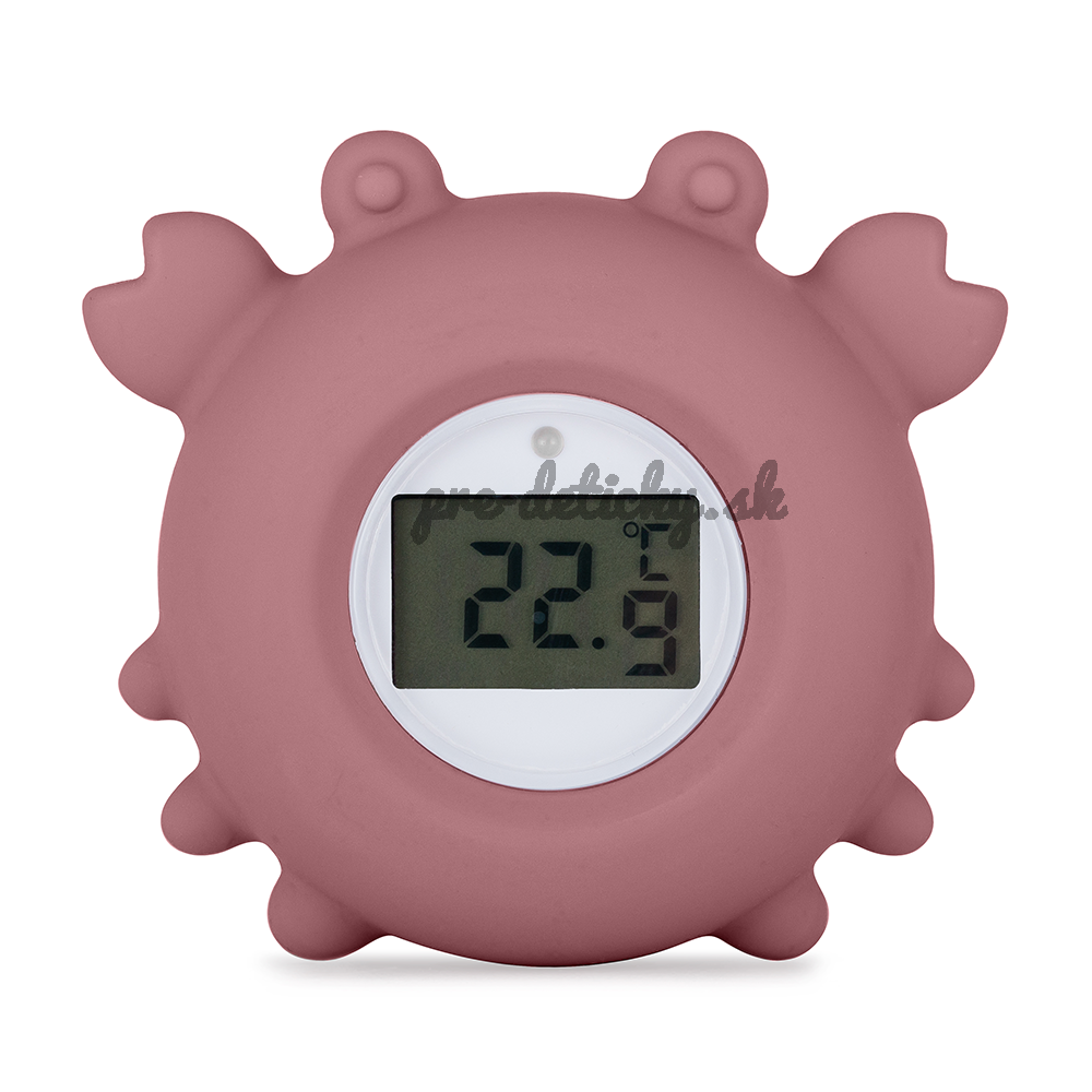 PETITE&MARS Teplomer silikónový digitálny do vody Crab Caleb Dusty Rose 0m+