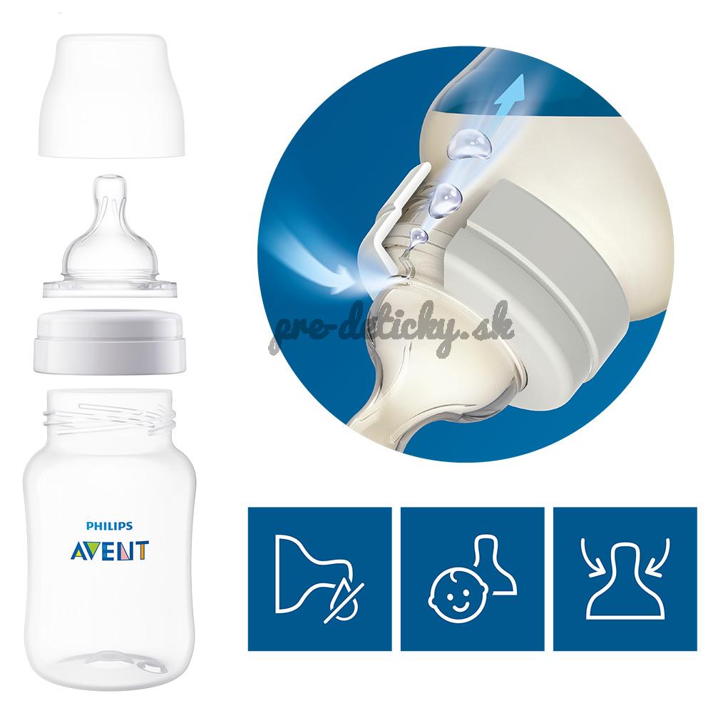 Šumivý zvuk je známkou toho, že vzduch prúdi do fľaštičky a nie do žalúdka vášho dieťaťa. Práve prehĺtnutý vzduch počas kŕmenia vyvoláva plač spôsobený bolestivou kolikou alebo nafukovaním.