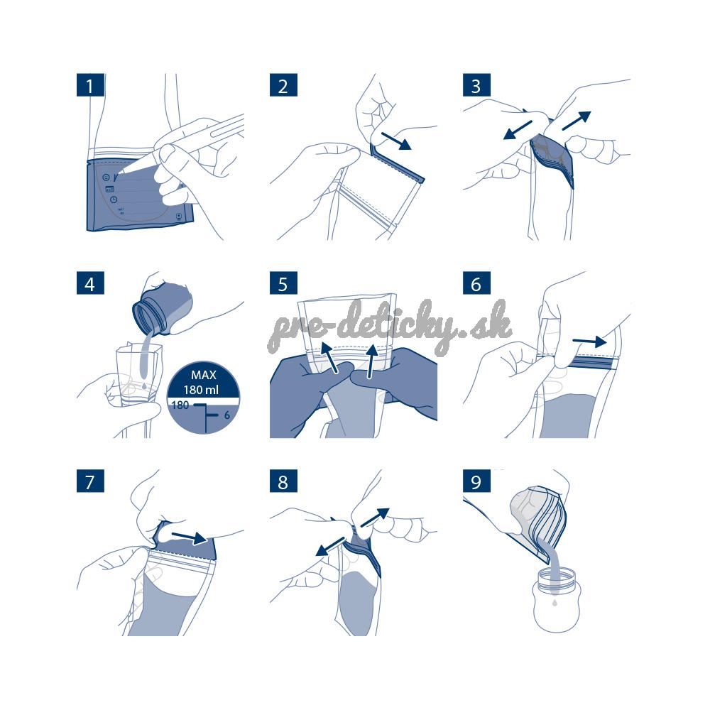 - Vrecká na skladovanie materského mlieka odkladajte