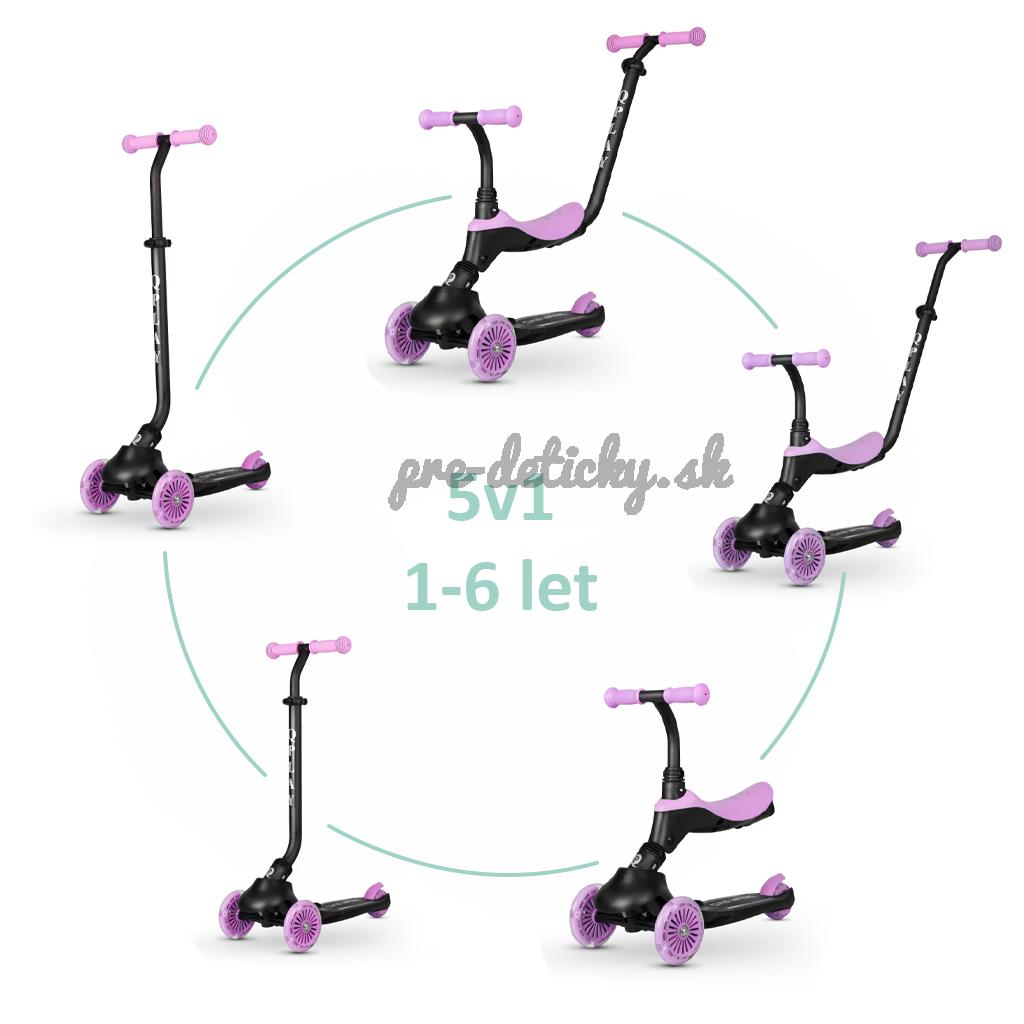QPLAY Kolobežka / odrážadlo Sema Evo s LED svetlami Violet, vek 1 - 6 rokov, do 50 kg