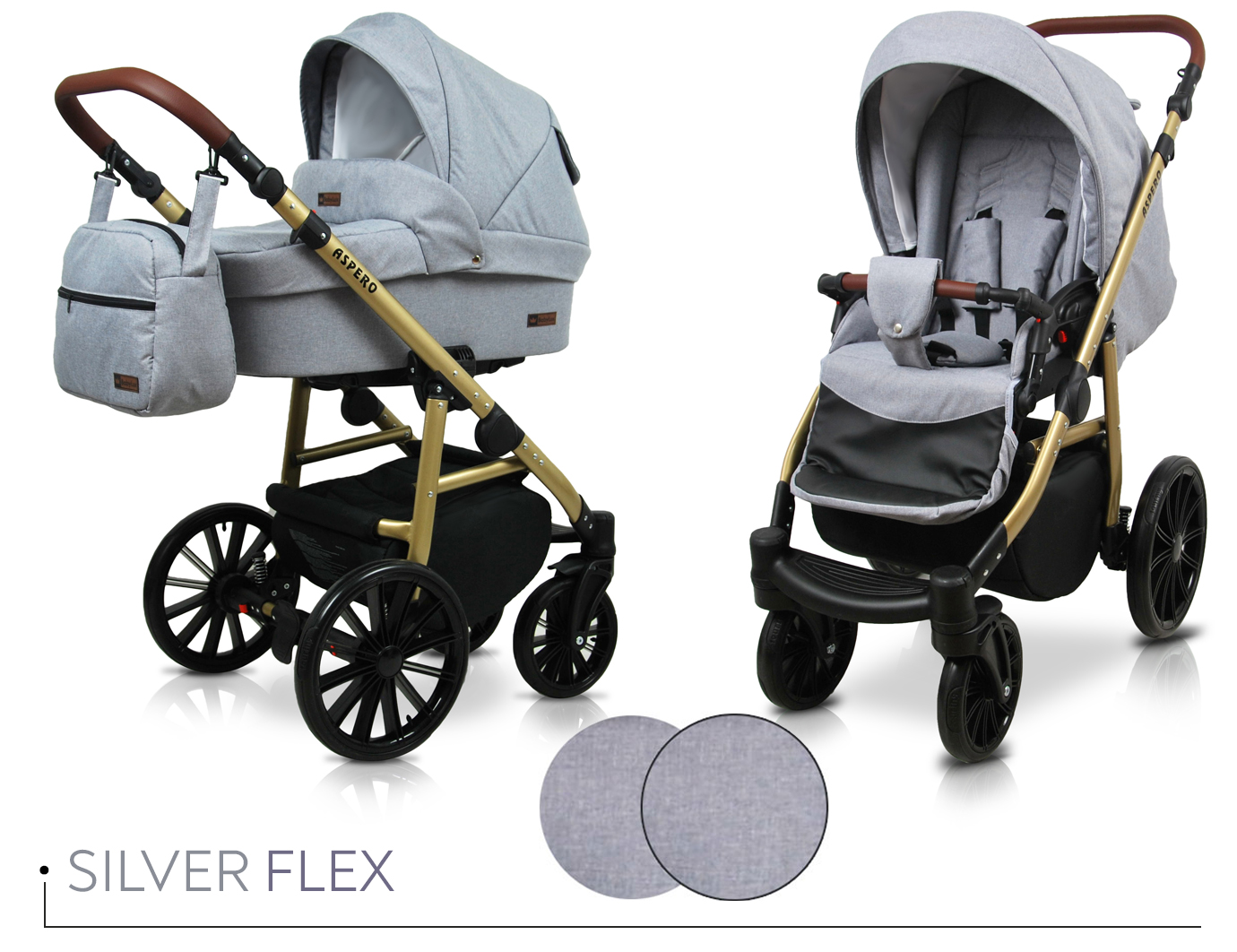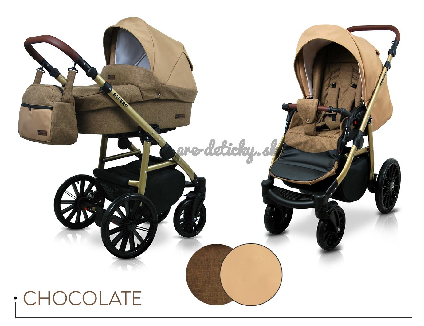 - Veľkou prednosťou kočíka Aspero je veľký nákupný kôš, do ktorého mamička vloží aj najväčšia nákup a ďalšou veľkou prednosťou je veľká hlboká vanička, ktorá sa svojou vnútornou dĺžkou 80 cm, vnútornou šírkou 37 cm a vnútorné výškou 22 cm, radí medzi najväčšie korbičky na trhu.