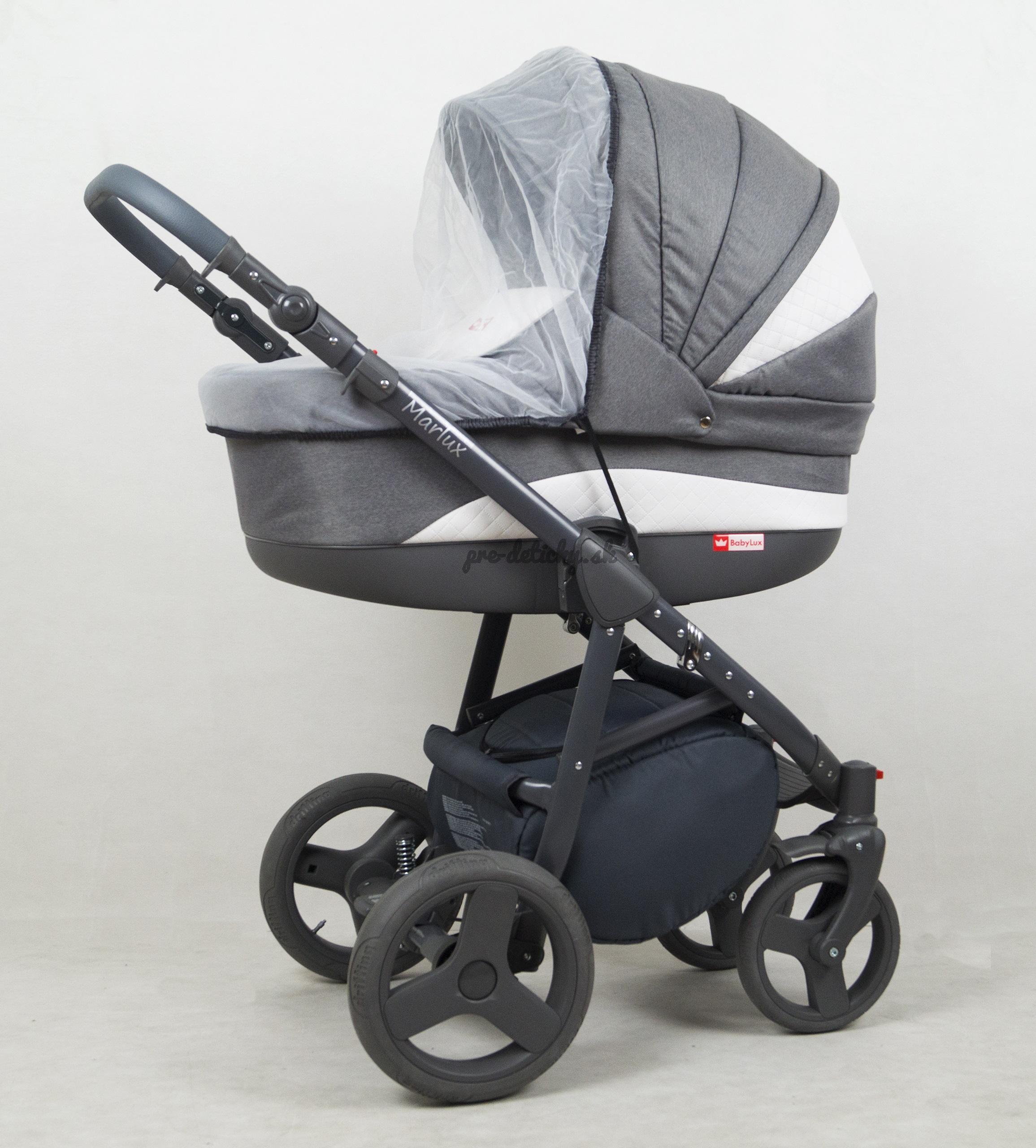 - Veľkou prednosťou kočíka Marlux je veľký nákupný kôš, do ktorého mamička vloží aj najväčšia nákup a ďalšou veľkou prednosťou je veľká hlboká vanička, ktorá sa svojou vnútornou dĺžkou 80 cm, vnútornou šírkou 37 cm a vnútorné výškou 22 cm, radí medzi najväčšie korbičky na trhu.