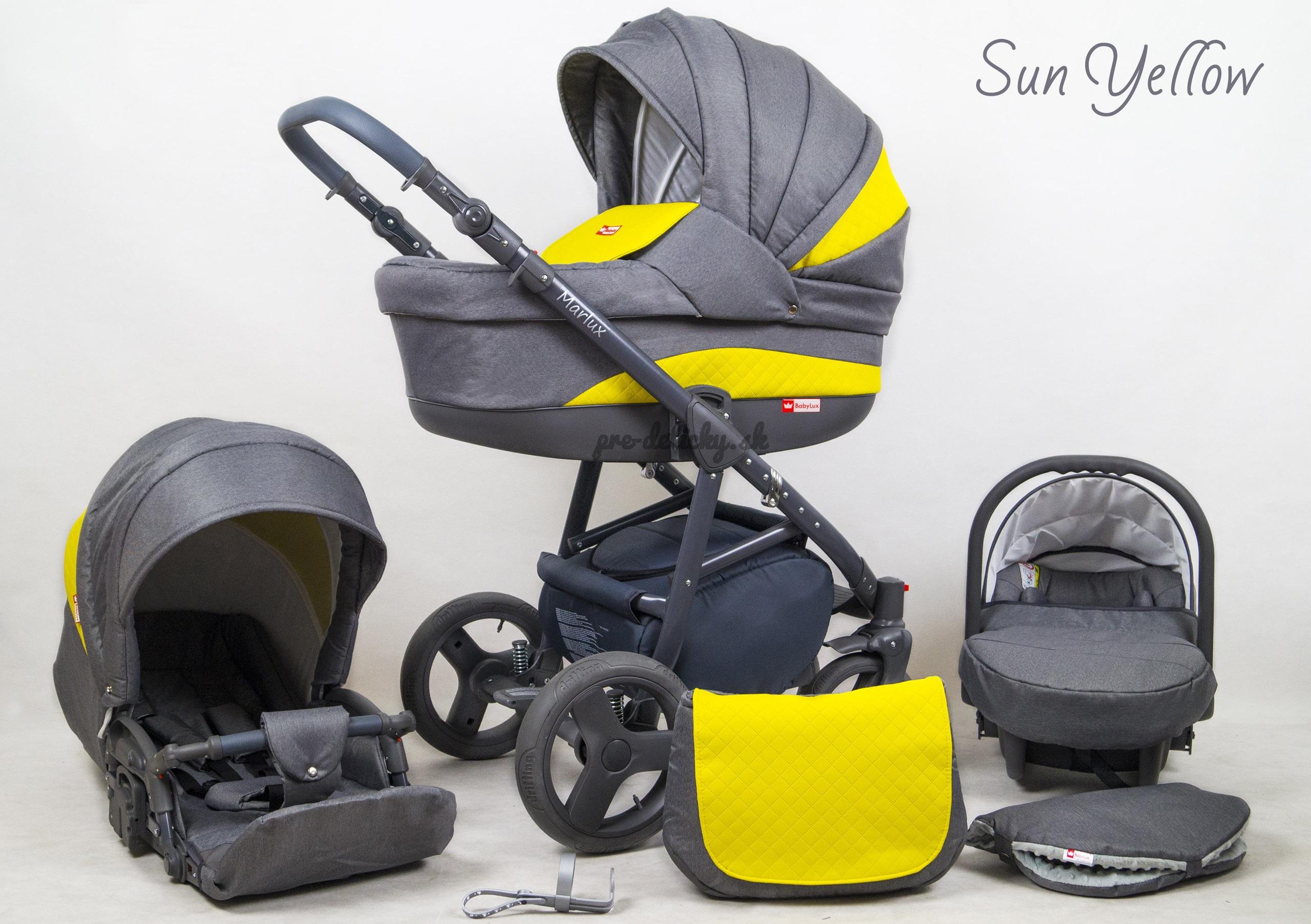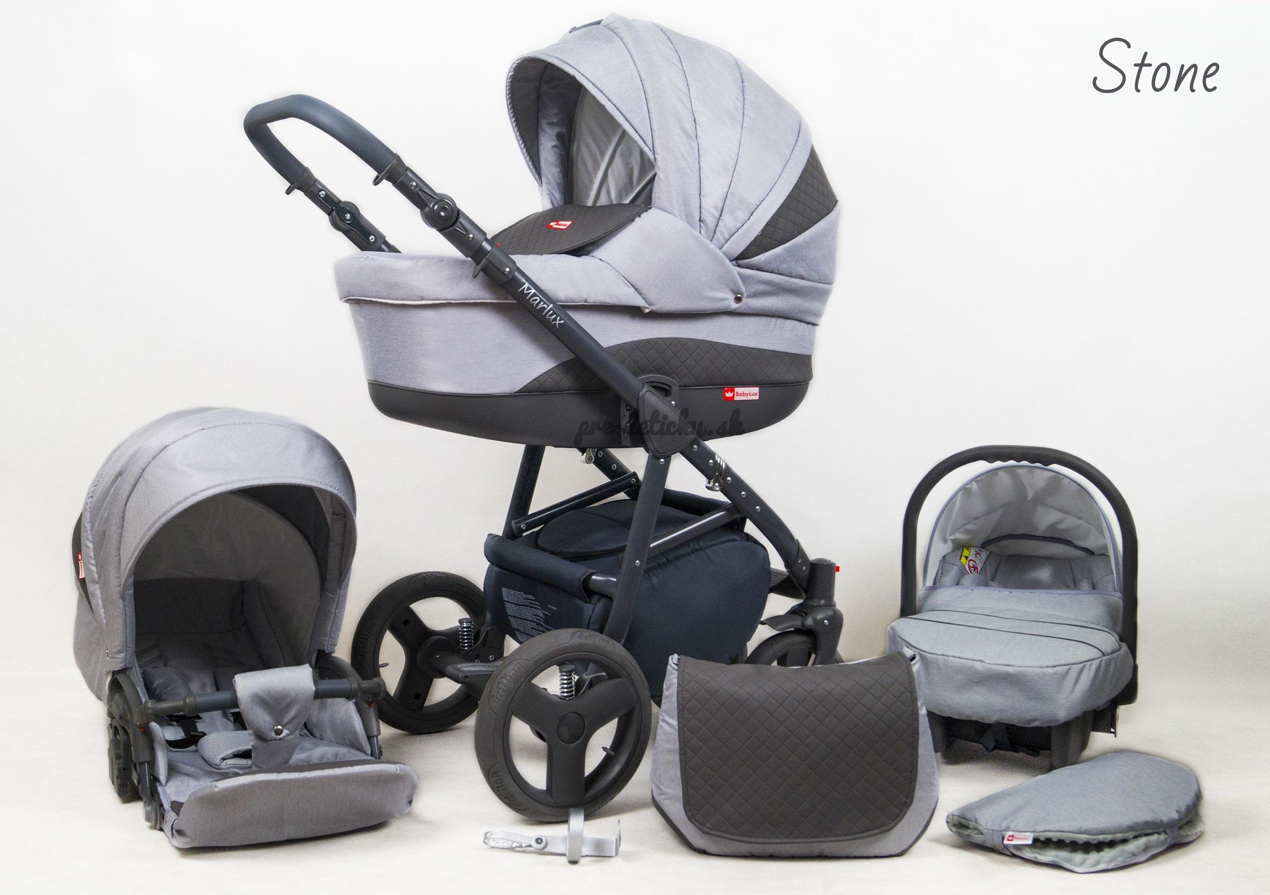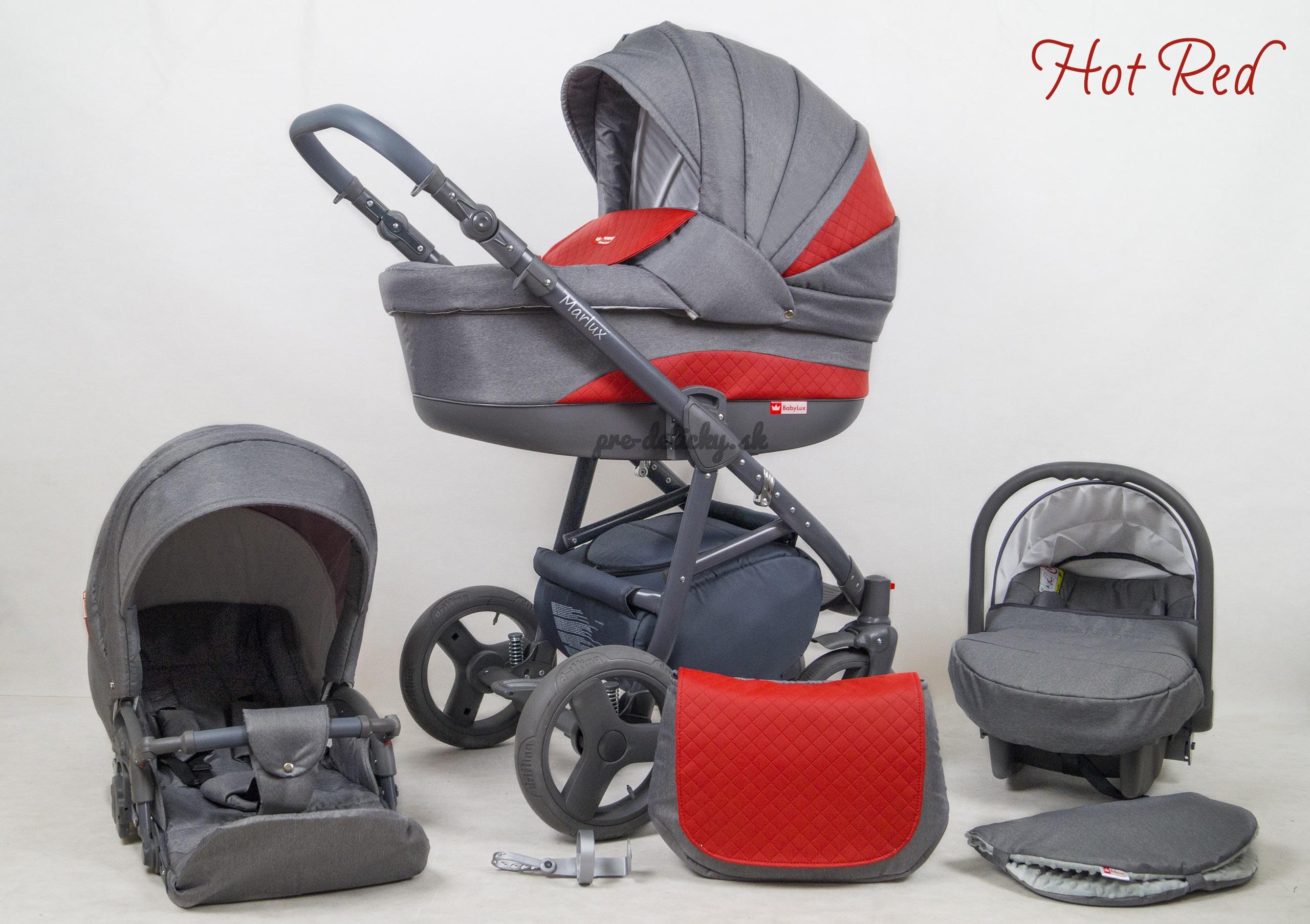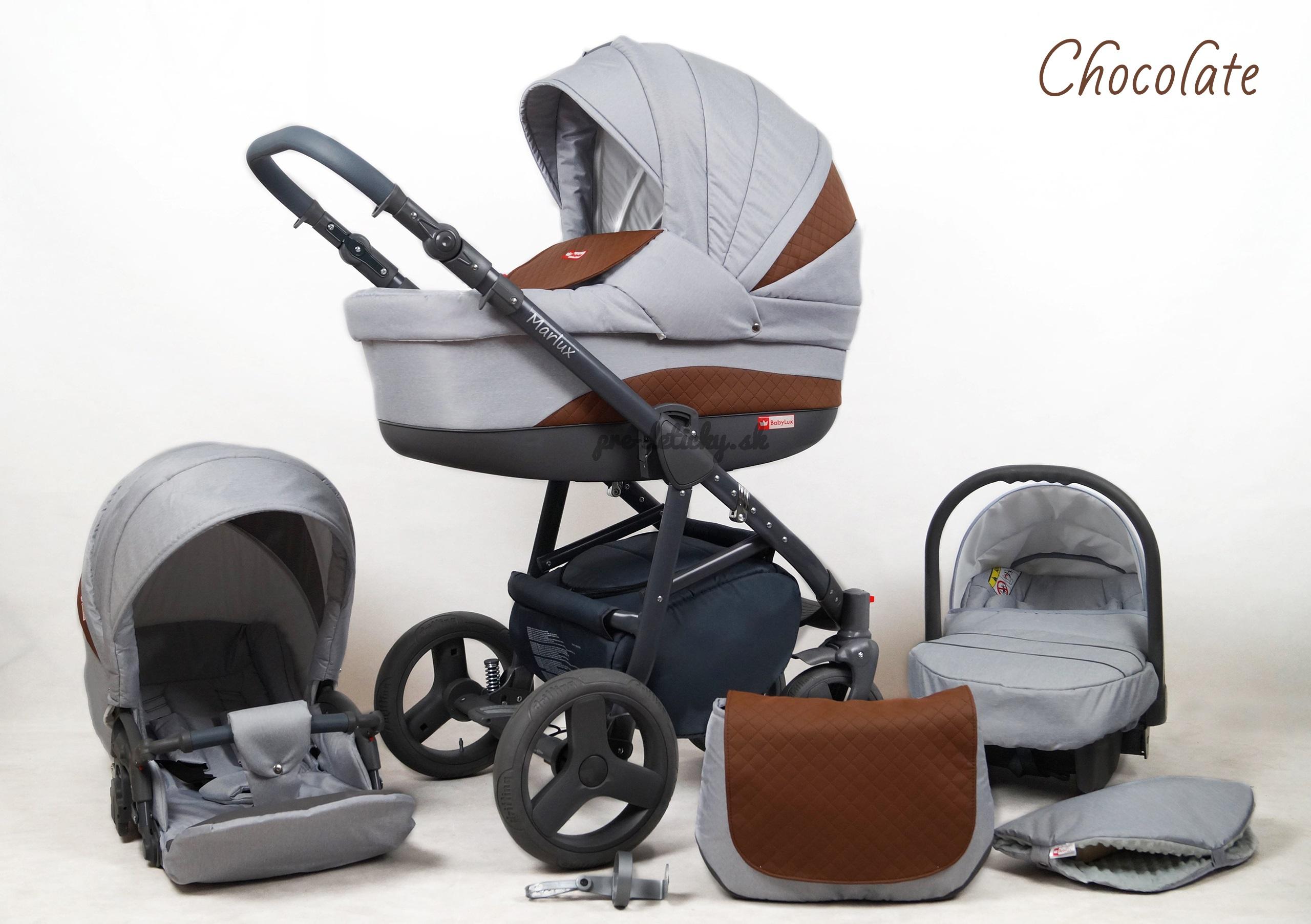 Autosedačka nie je súčasť setu, dokupuje sa samostatne - jednofarebná autosedačka podľa toho, ktorá farba u kočíka prevažuje.