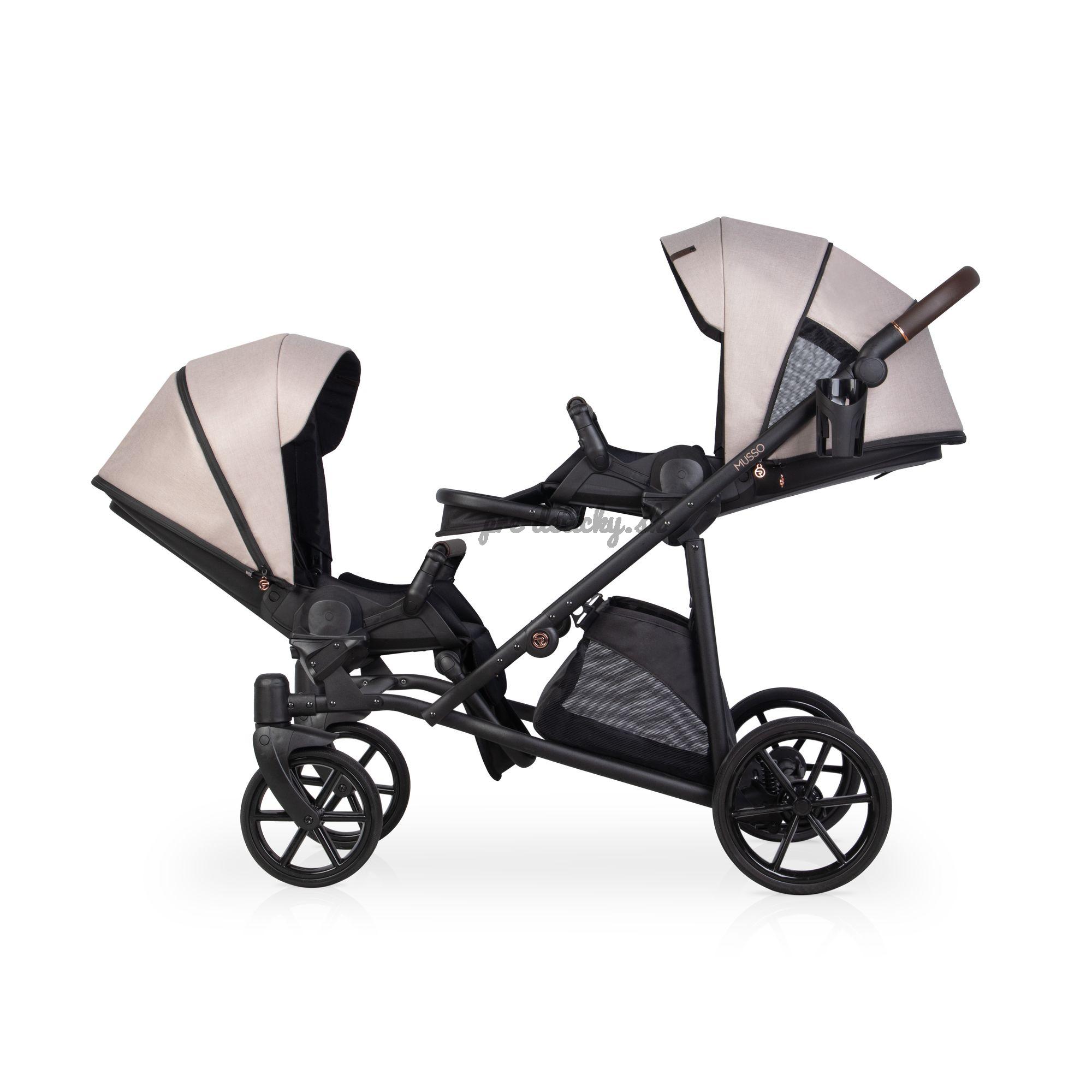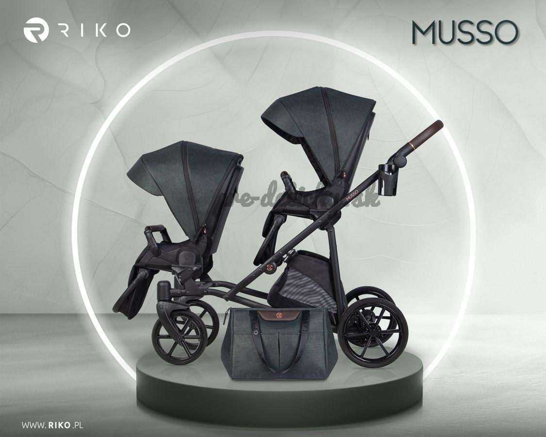 Kočík MUSSO pre dve deti značky RIKO je možné použiť ako kočík pre dvojičky, tak aj pre dve deti rôzneho veku do hmotnosti 22 kg. Základnou verziou je rám s dvoma sedačkami na kočík určený pre deti od 6 mesiacov do 22 kg. Navyše si môžete kúpiť jednu alebo dve vaničky, čím vytvoríte multifunkčný kočík 2 v 1 pre dvojčatá (s dvoma vaničkami a dvoma sedadlami) alebo pre deti rok čo rok (s jednou vaničkou a jedným sedadlom). Rozšírením setu o jednu alebo dve autosedačky RIKO COSMO by AVIONAUT získame kočík 3v1. Vďaka možnosti použitia univerzálnych adaptérov na autosedačku pre deti vo výške 40-87 cm je možné kočík MUSSO vybaviť autosedačkami iných známych značiek, ktoré majú takzvané univerzálne uchytenia typu "Maxi Cosi".