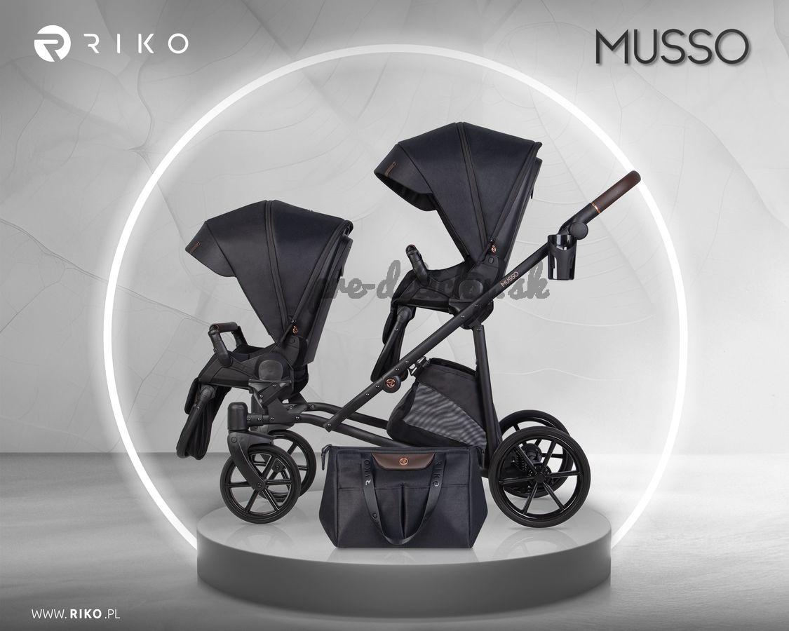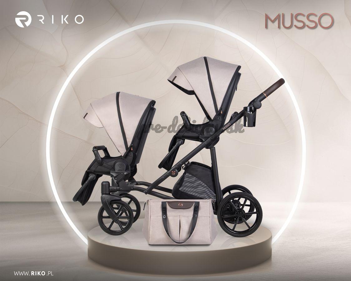 Tandemový kočík RIKO MUSSO umožňuje až 16 rôznych konfigurácií sedadiel, vaničiek a autosedačiek. Je možné umiestniť dve sedadlá v smere a proti smeru jazdy, ako aj oproti sebe alebo chrbtom k sebe. MUSSO by RIKO ako jeden z mála kočíkov na trhu umožňuje aj ľubovoľnú konfiguráciu spojenia jednej gondoly s jednou sedačkou kočíka, vrátane možnosti montáže sedačky na predný modul smerom dopredu, pričom vanička sa montuje na zadný modul. Na ráme kočíka sa samozrejme dajú prepravovať dve vaničky alebo dve autosedačky súčasne.