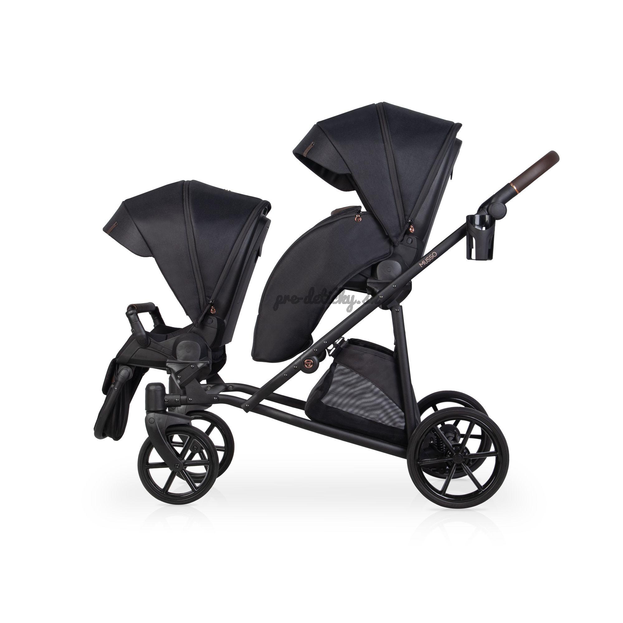 Set so základným kočíkom obsahuje rám s kolieskami a košíkom, dve sedačky na kočík, dva nánožníky, dve pláštenky, dve moskytiéry, dve bezpečnostné zábrany a veľkú štýlovú tašku so systémom uchytenia na madlo kočíka.