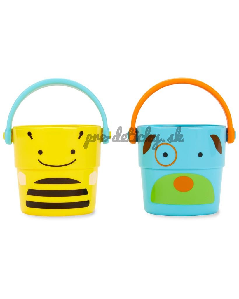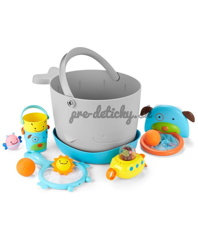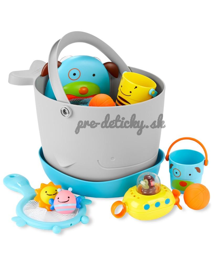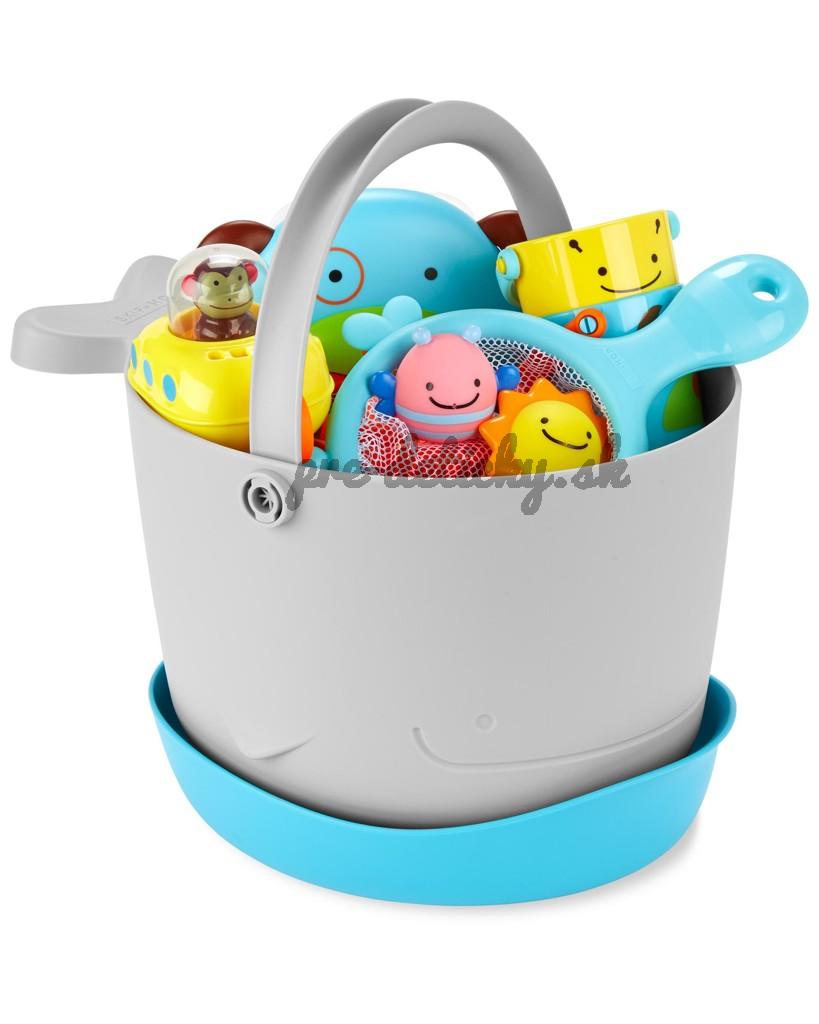 Súpravu hračiek do kúpeľa s vedierkom (v nádhernom zvieracom dizajne) si rodičia aj deti zamilujú. Vďaka veľkým odtokovým otvorom a samostatnej stojatej základni na zachytávanie prebytočnej vody je sušenie a skladovanie hračiek bezproblémové.