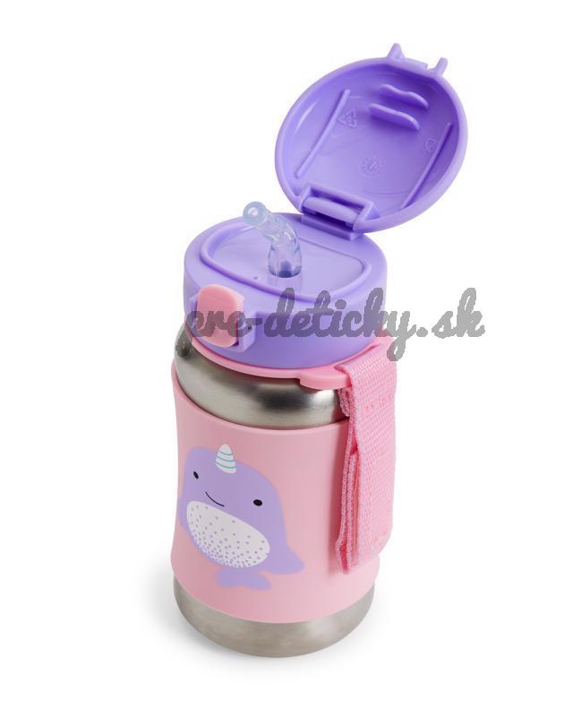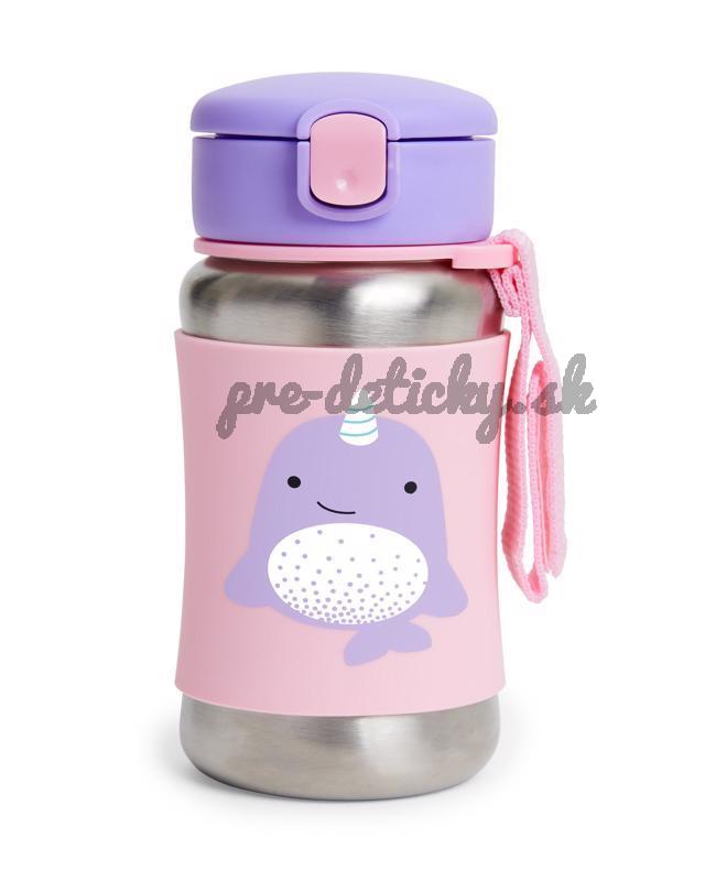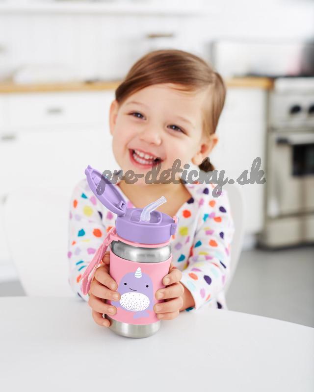 SKIP HOP Zoo Fľaša so slamkou na vodu nerez Narval 12m+