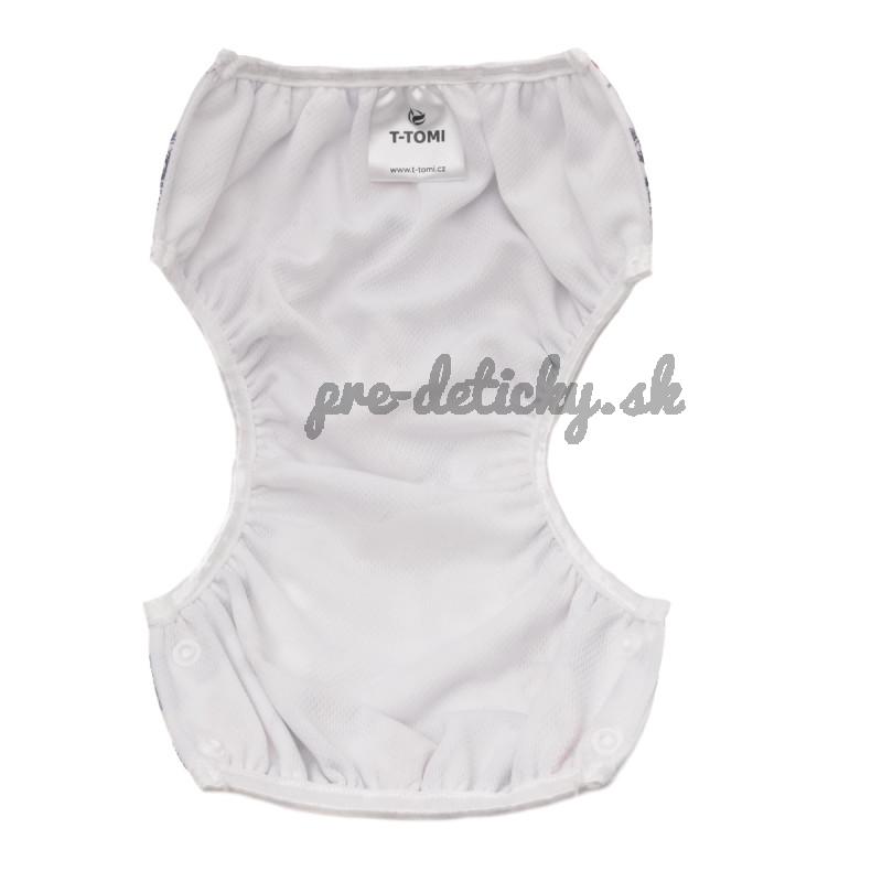 Plienkové plavky T-TOMI v modernom nadčasovom dizajne sú určené pre plávanie bábätiek od 5 do 12 kg. Tieto plavky sú vhodné ako pre novorodencov tak aj pre batoľatá a to vďaka jednoduchému systému patentiek, pomocou ktorých sa požadovaná veľkosť ľahko nastavuje. Vnútorná strana plienkových plaviek je vybavená praktickou sieťkou, ktorá zachytí prípadné "nehody" bábätka vo vode. Veľkou výhodou týchto plienkových plaviek T-TOMI je ich ekonomická stránka oproti jednorazovým plienkovým plavkám.