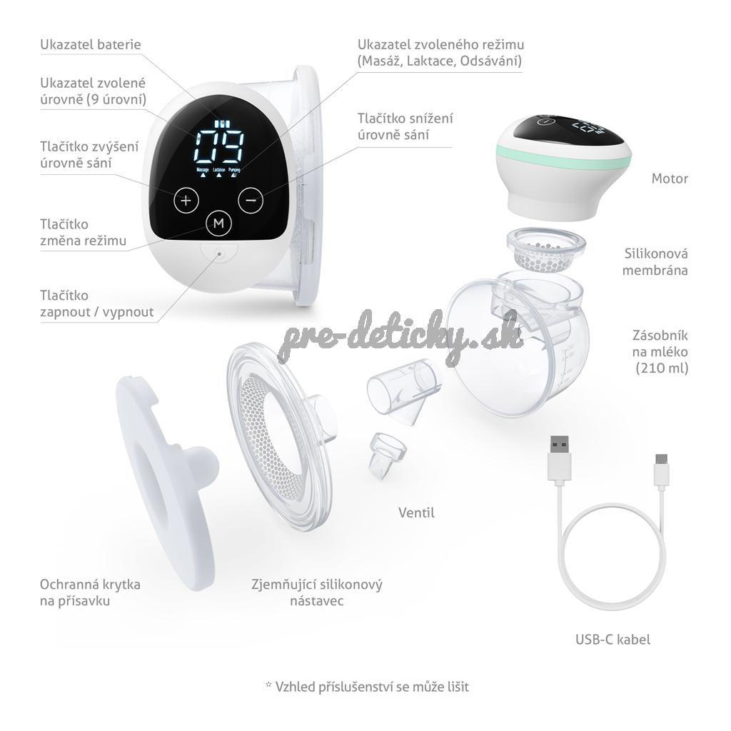 - Odsávanie prebieha automaticky vďaka elektrickej pumpe. Zariadenie je celistvý kus na batériu pre možnosť pohodlne ho nosiť so sebou aj na cesty.