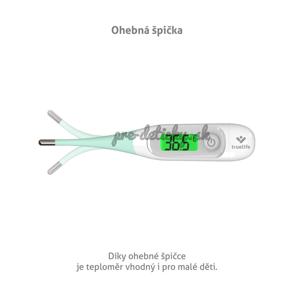 - Ohybná špička: ohybný hrot teplomera, ktorý bol navrhnutý s maximálnou starostlivosťou, zaisťuje pohodlie počas merania, takže je vhodný aj pre najmenšie detičky.