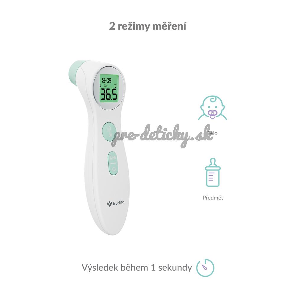 TrueLife Care disponuje dvomi režimami merania teploty. Okrem klasického merania telesnej teploty dokáže zmerať aj predmety, povrchy, alebo tekutiny. Jednoducho tak môžete skontrolovať napríklad dojčenskú stravu alebo čaj.