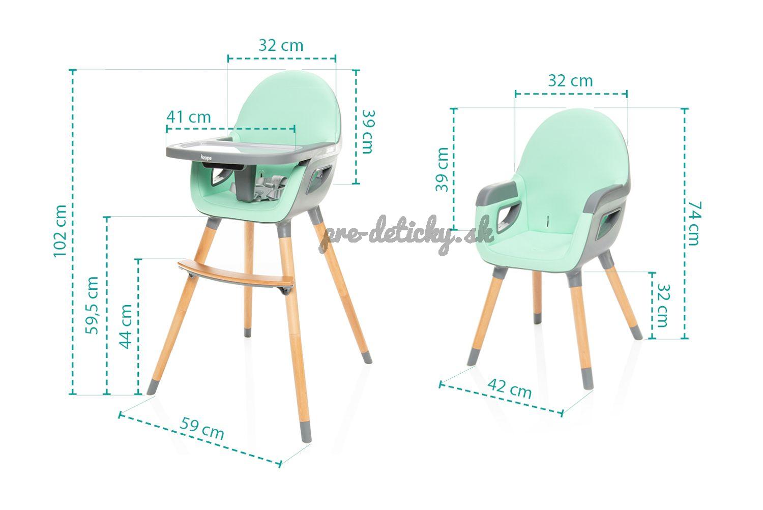 Na výber je niekoľko farebných variantov v minimalistickom dizajne, vďaka ktorým stolička hravo zapadne do každého interiéru. Možno ju použiť ako klasickú jedálenskú stoličku alebo po znížení výšky a odstránení pultu ako detskú stoličku do detskej izby. Na pohodlné prenášanie je stolička vybavená praktickými držadlami.