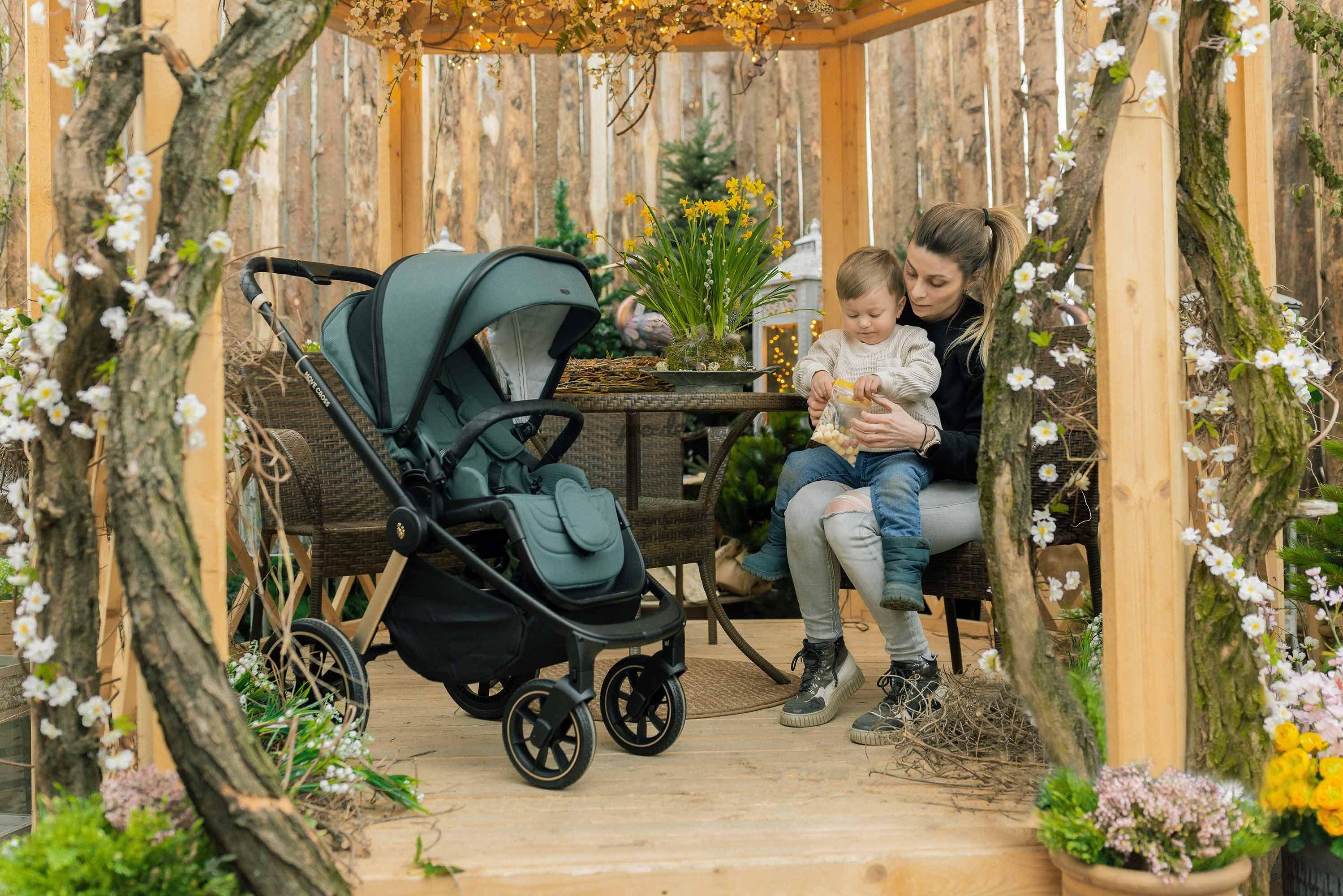 Výškovo nastaviteľná rukoväť zaistí, že kočík môžu pohodlne voziť všetci členovia rodiny bez ohľadu na ich výšku.