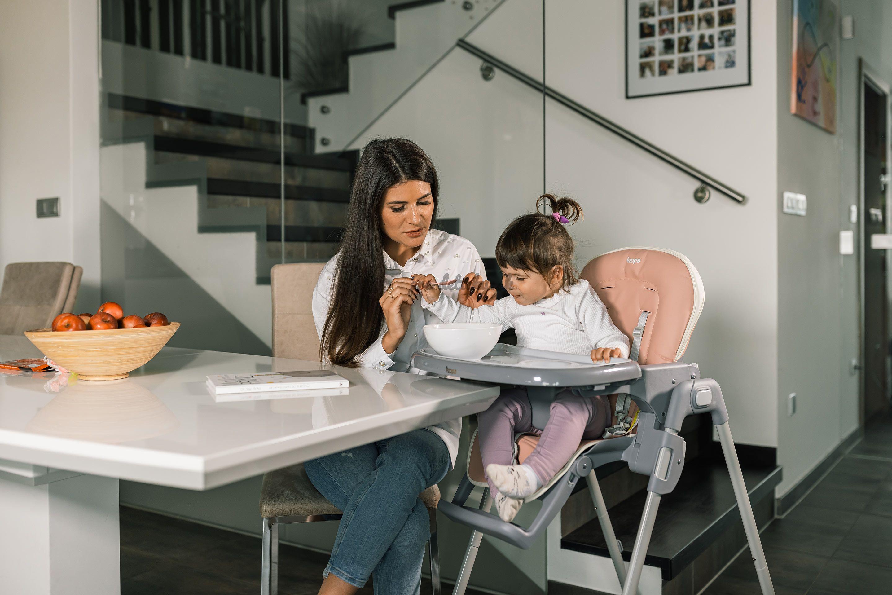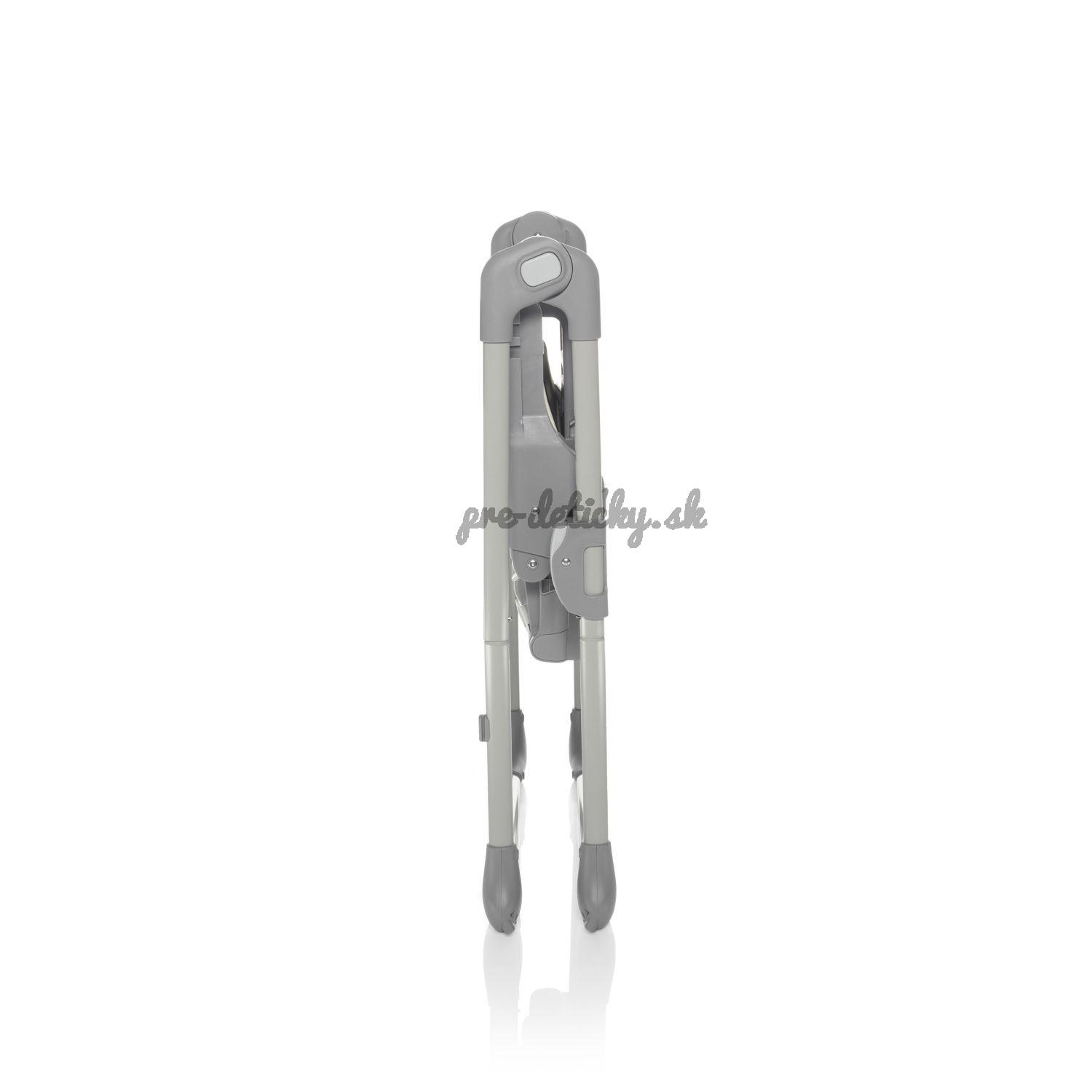 Stolička, ktorá sa plne prispôsobí potrebám rodičov aj detí. Pevná stabilná konštrukcia je veľmi ľahká a dá sa ľahko zložiť pomocou dvoch poistiek po stranách. V zloženom stave sama stojí na mieste. Vďaka kompaktným rozmerom je možné zloženú stoličku umiestniť aj do malých priestorov. Po zložení má šírku iba 13 cm.