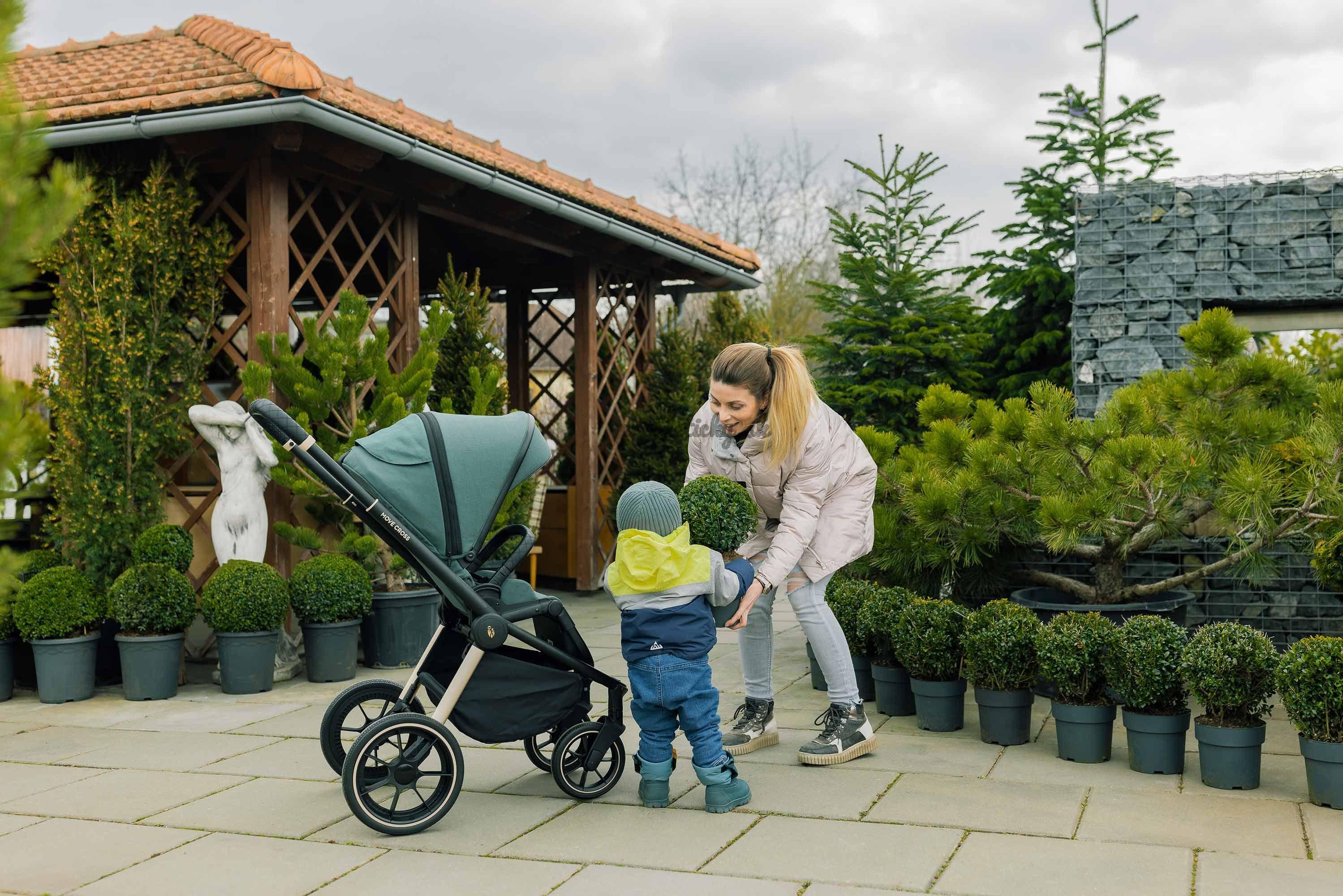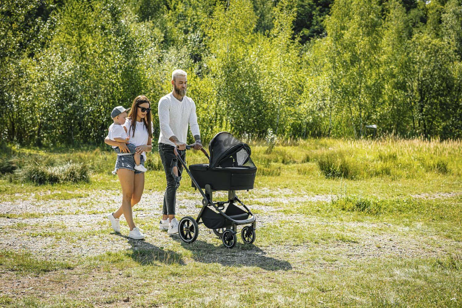 Rozšíriteľná strieška spolu s nánožníkom chráni dieťa pred chladom a ostrými slnečnými lúčmi.